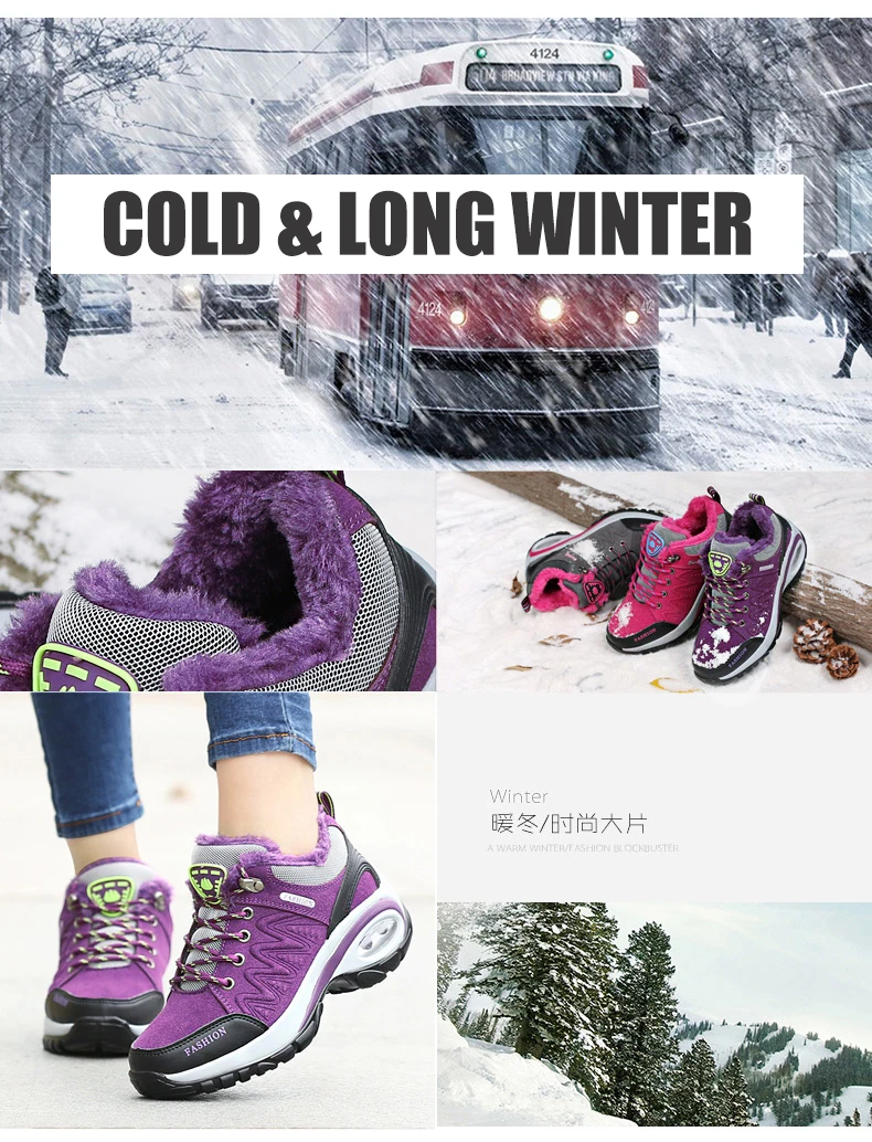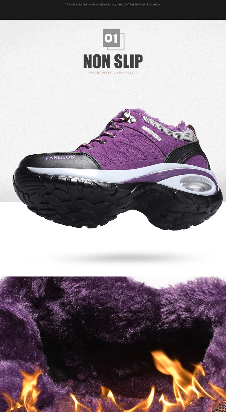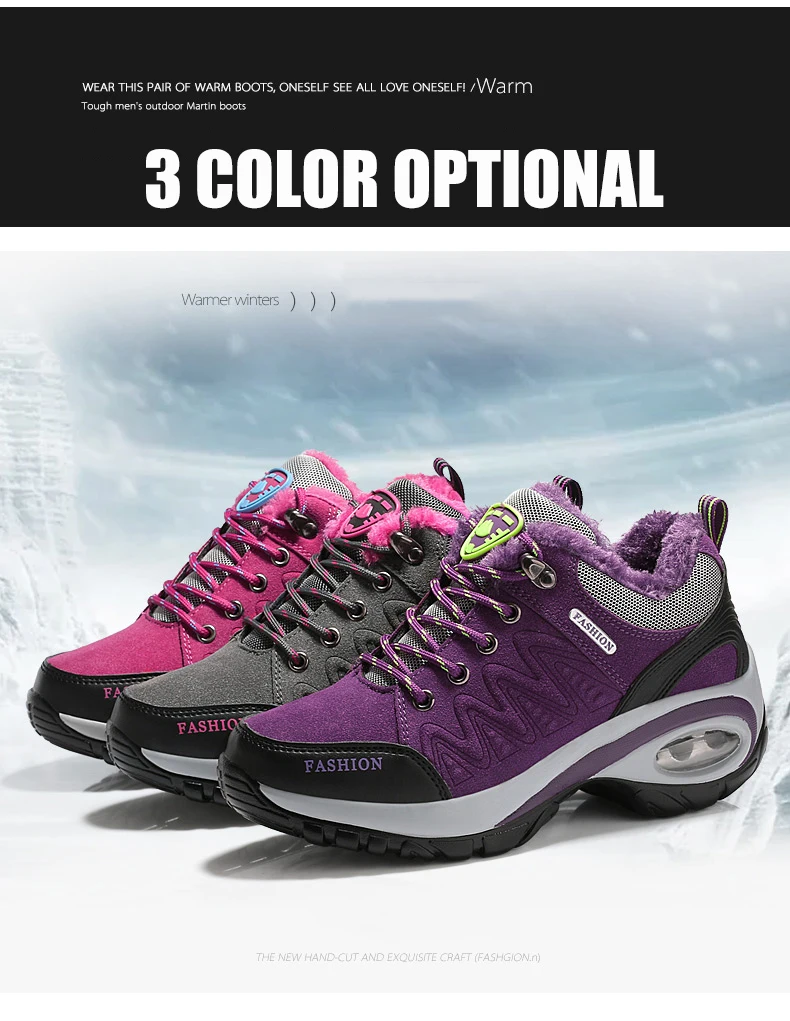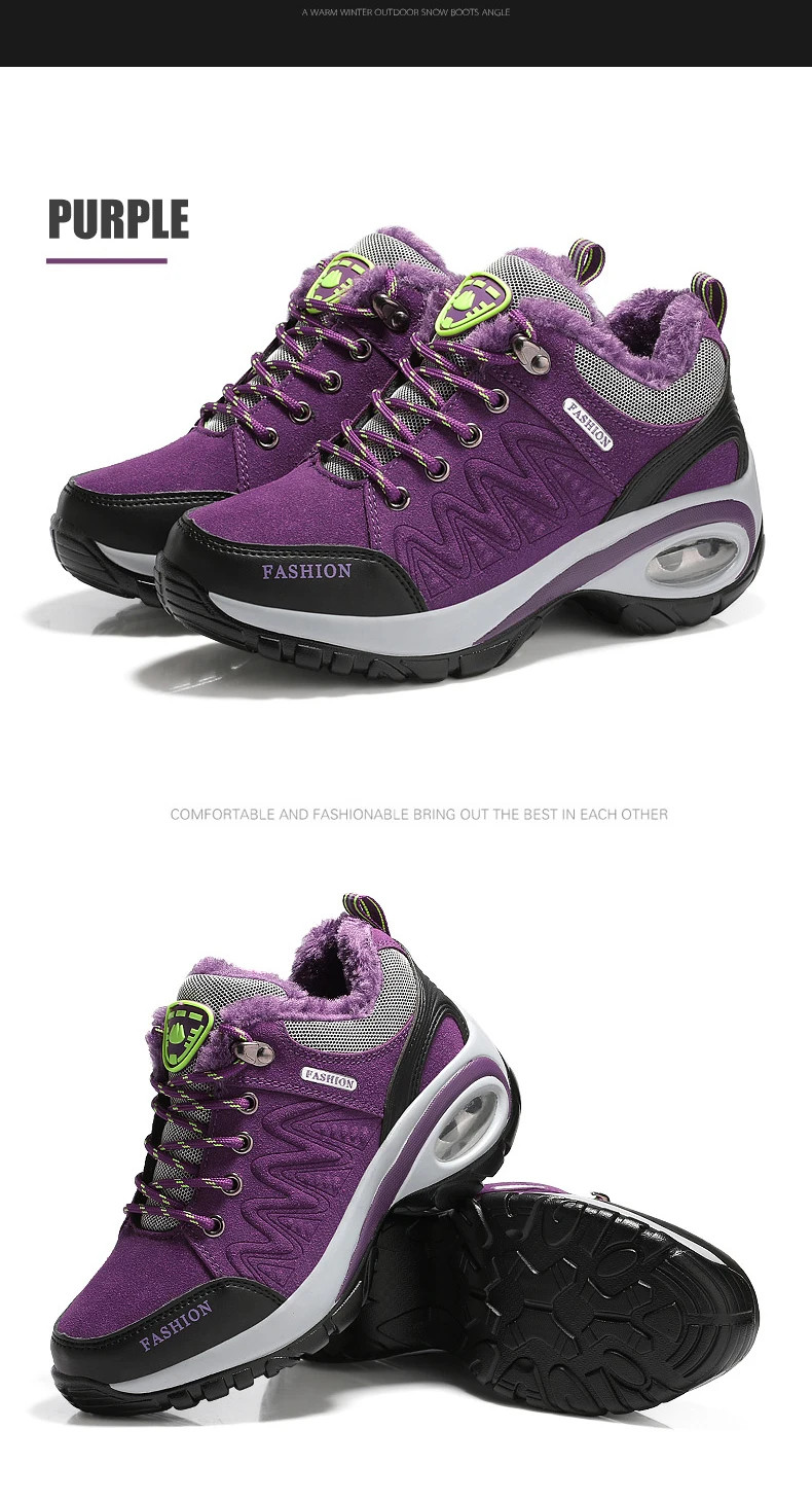 Женские зимние ботинки для пешего туризма; Уличные теплые Нескользящие женские ботинки с воздушной подушкой; Нескользящие зимние ботинки; Спортивная обувь для ходьбы для женщин