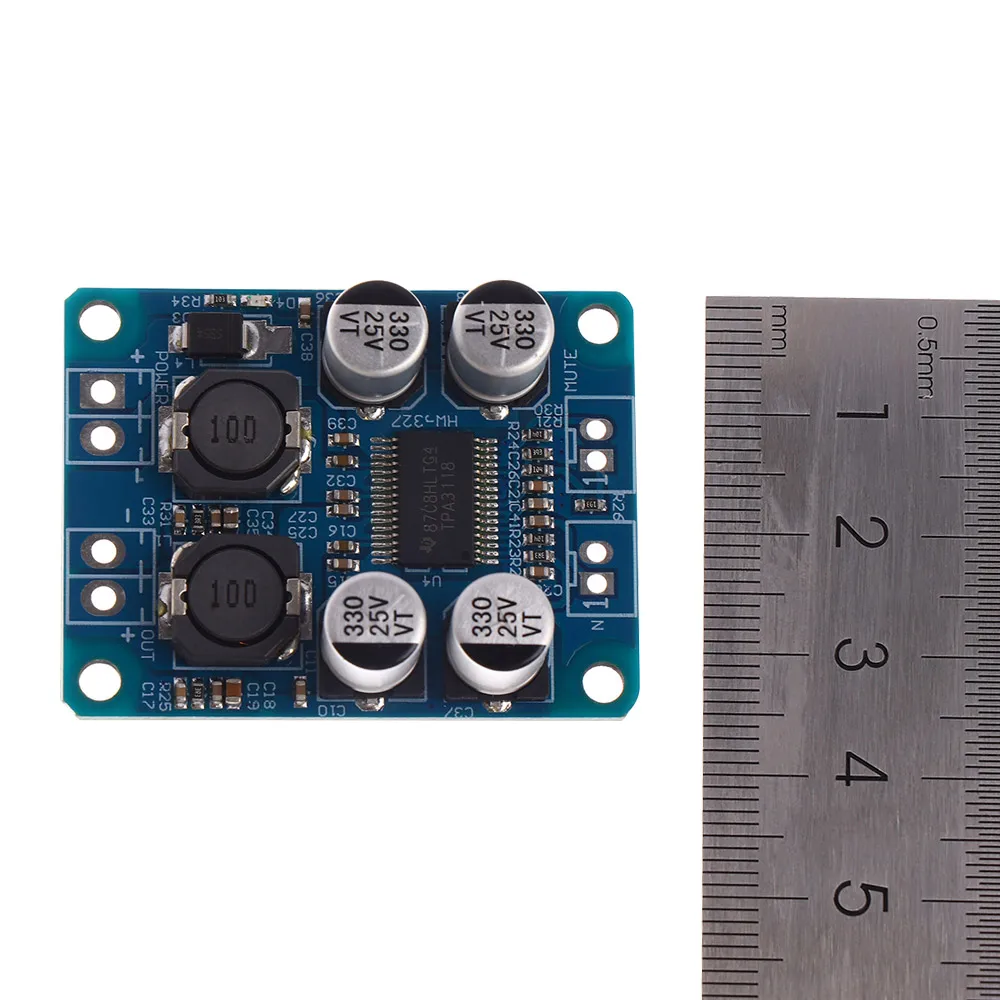 Рабочее напряжение: DC8-24V Выходная мощность: 60 Вт Размер платы PCB: 45*35 мм/1,77 * 1.4in Вес: 12 г/0,43 унций Посылка включает в себя: 1 * плата цифрового усилителя Характеристика: Качество звука очень хорошее с помощью этого модуля. Моно цифровой аудио усилитель чип. Высокая производительность и низкое энергопотребление. Применимое Сопротивление динамика: 4-8 Ом (8 Ом является лучшим).