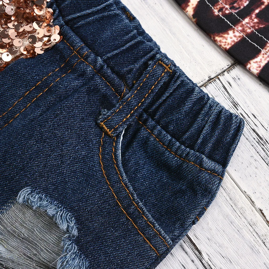 Детский Леопардовый жилет с оборкой и пайетками для маленьких девочек, джинсовые шорты, летняя одежда