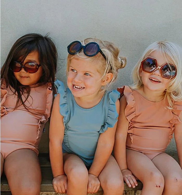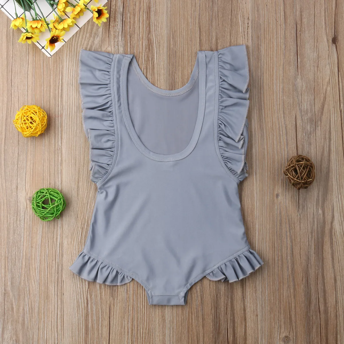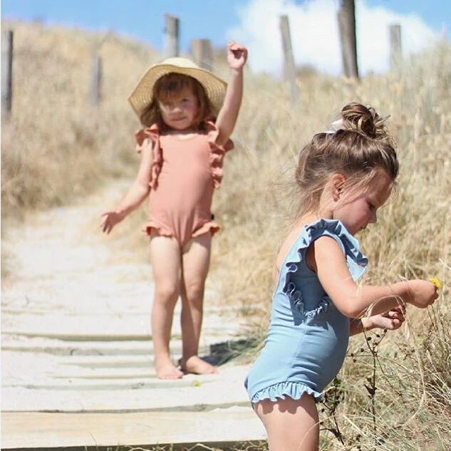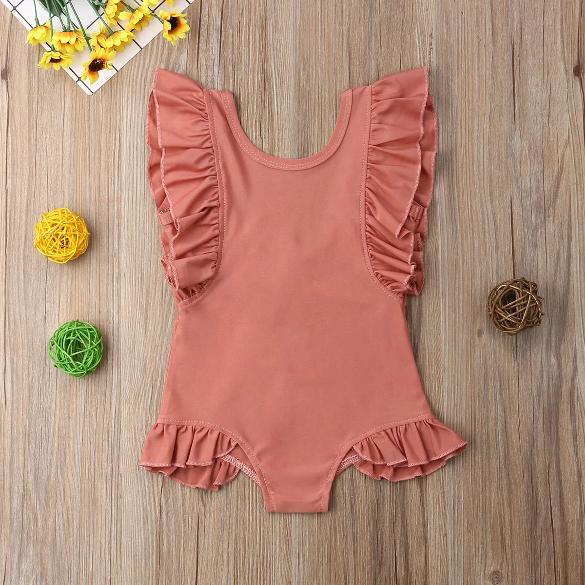 Новинка 2019, детский однотонный купальный костюм с оборками для девочек!