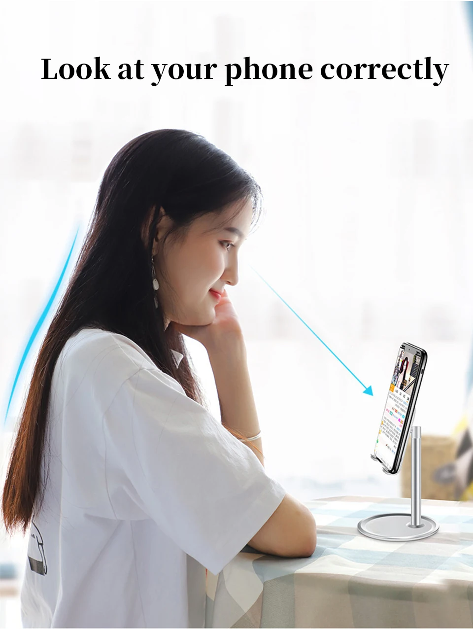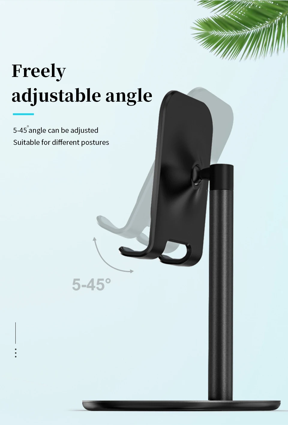 1. Гибкий и регулируемый держатель: 5-45 градусов вращающийся держатель телефона, свободно регулировать любой угол, как вам нравится, для удобного просмотра.