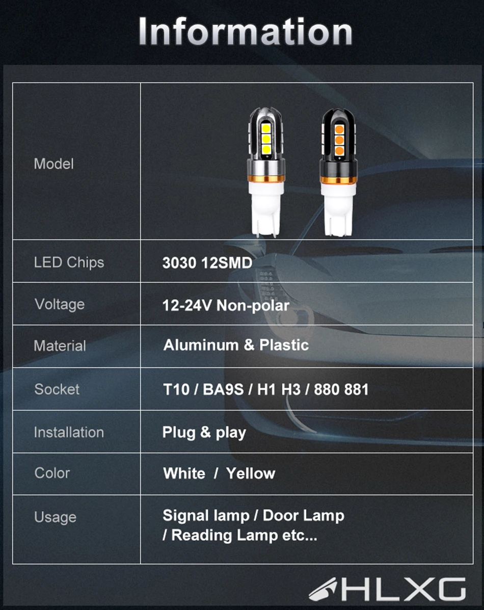 Описание: Светодиодный Тип чипа: 12SMD-3030 Светильник Цвет. Белый или желтый цвет Тип розетки: T10 W5W 194 501 158 Напряжение: 12V-24v Срок службы:> 50000 часов Гарантия: 1 год Особенности: Неполярность (простая установка plug and play) 100% новый бренд, высокое качество, Низкая температура, низкое энергопотребление и срок службы до 50000 часов. Новый светодиодный индикатор снижает энергопотребление с 40% до 80%. Пожалуйста, обратите внимание, что эта лампа не предназначена для головной светильник или светильник дальнего света. Посылка включает в себя: 2 шт.