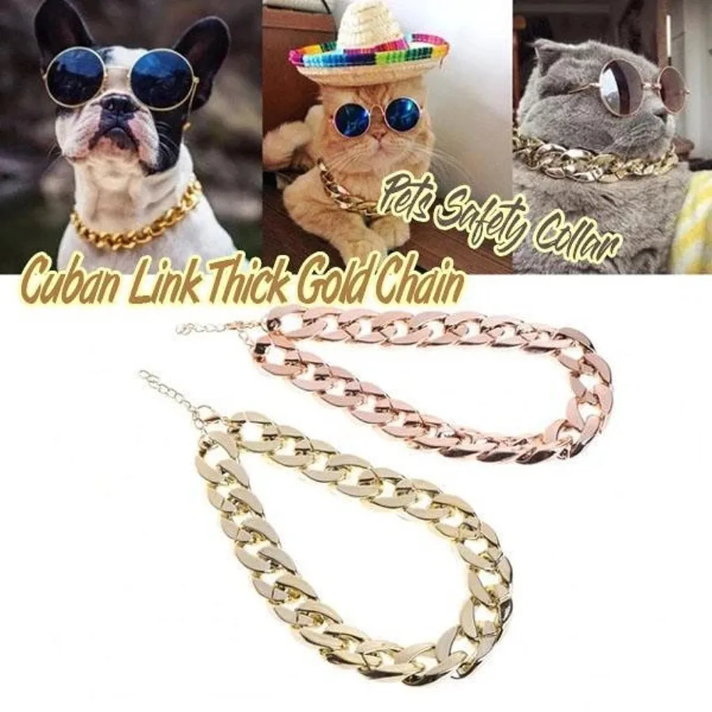 1 x Cuban Link Thick Gold Chain Pets Safety Collar