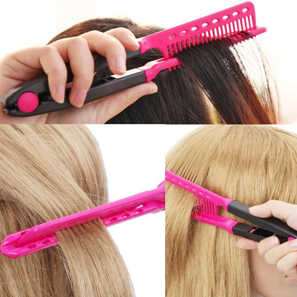 Тип товара: расческа для выпрямления волос Посылка: 1 шт. Размеры: 3,7*25 см Цвет: розовый Защитите руки от тепла. Подготовка волос до выпрямления Эта v-образная расческа для волос идеально подходит для укладки волос, а также Фены и утюжки.