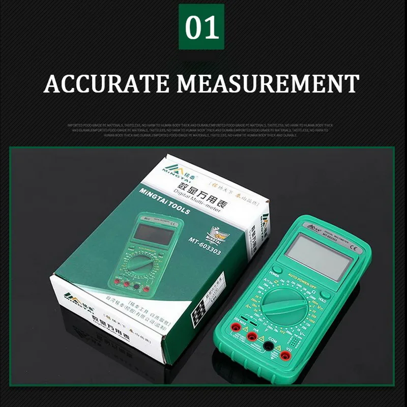 <Точно измеряет: напряжение переменного/постоянного тока, переменный ток, сопротивление, живой провод и многое другое.