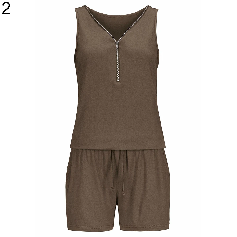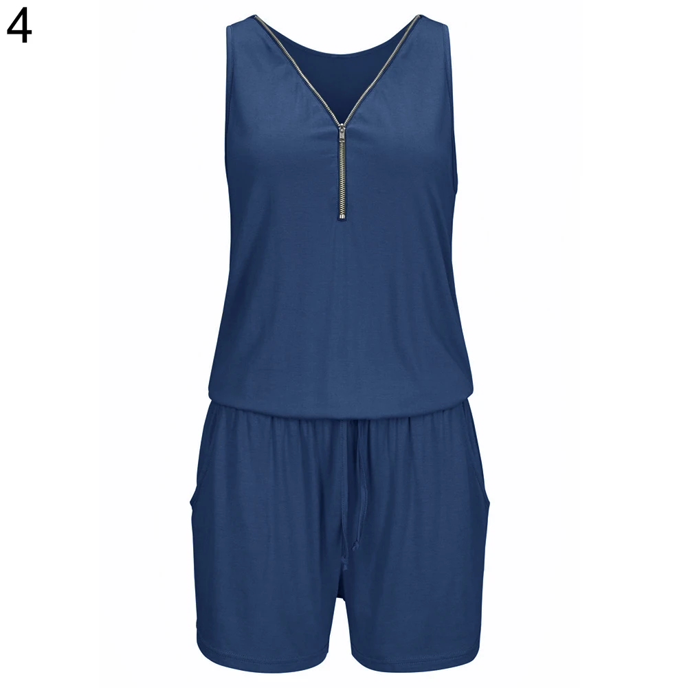 2017 сексуальный женский комбинезон, шорты, комбинезон macacao feminino, пляжный комбинезон на молнии с v-образным вырезом без рукавов