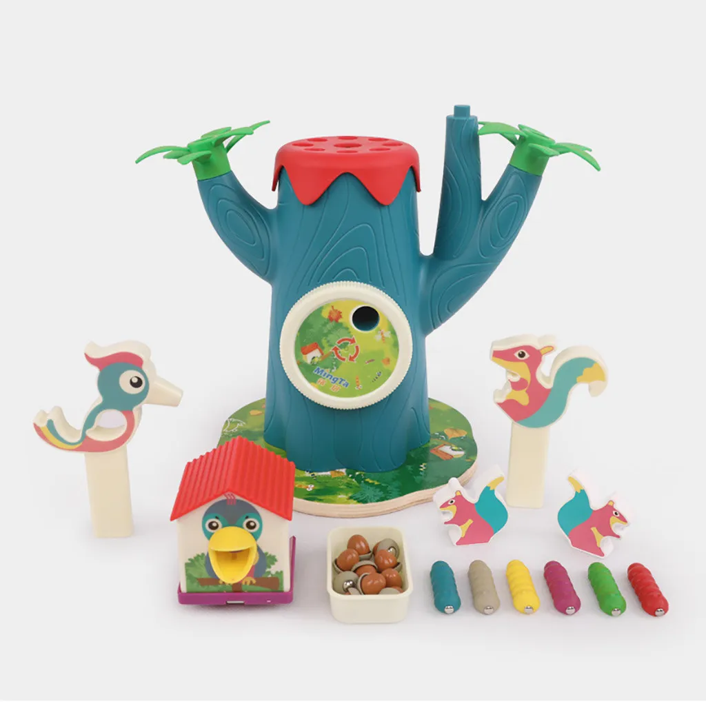 Милые насекомые скрыты в буме, который притягивает магнитную голову птиц Для маленьких детей. Эта игра может удовлетворить ваших детей Любопытство о природе.