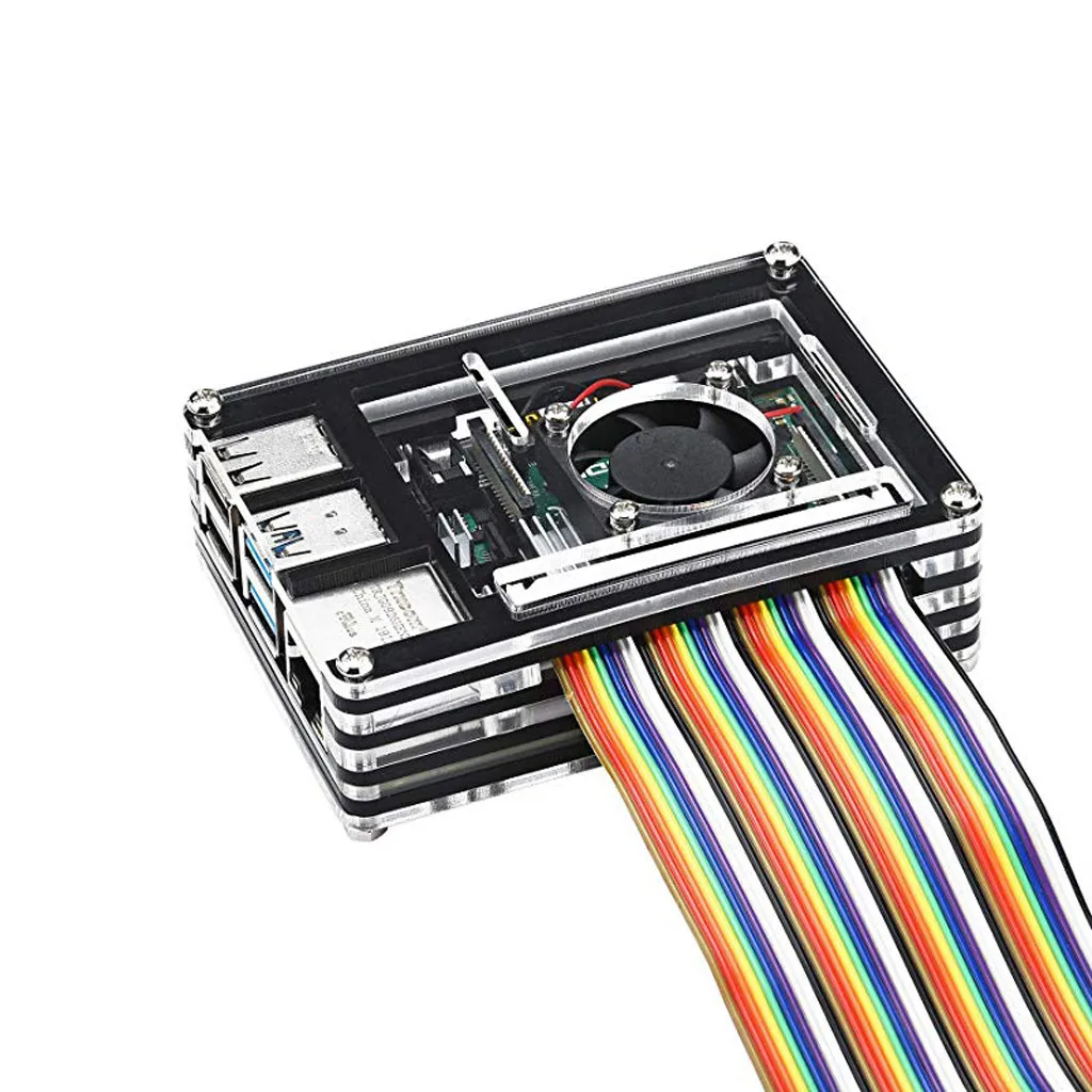 Акриловый чехол для Raspberry Pi 4 модель B, Raspberry Pi чехол с охлаждающим вентилятором и 4 шт. радиаторы для Raspberry Pi 4 модель B