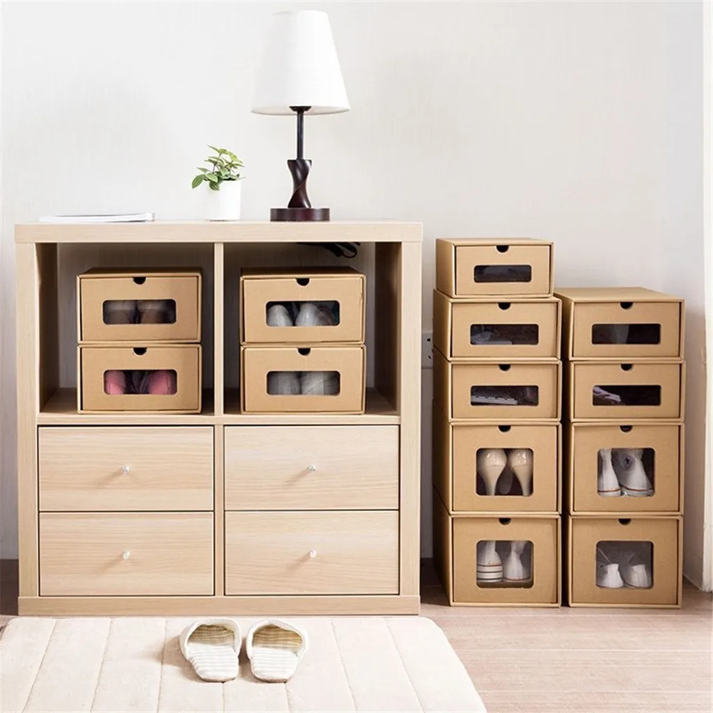 Утолщенная коробка из крафт-картона, прозрачный ящик для обуви, короб розетки