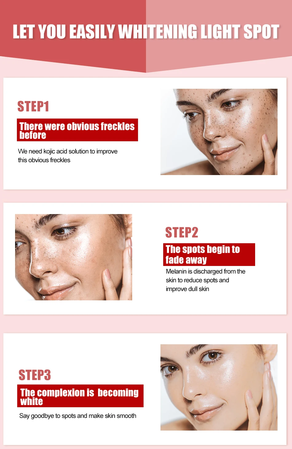 Содержит арбутин и никотинамид, может быстро проникать в кожу, эффективно препятствует активности тирозиназа в коже, блокирует образование меланина, И непосредственно сочетаются с тирозиназой для ускорения разложения и выведения меланина. Уменьшает пигментацию кожи, удаляет пятна и веснушки и не вызывает токсичных, раздражающих, аллергенных воздействий на меланоциты, делает кожу яркой и гладкой