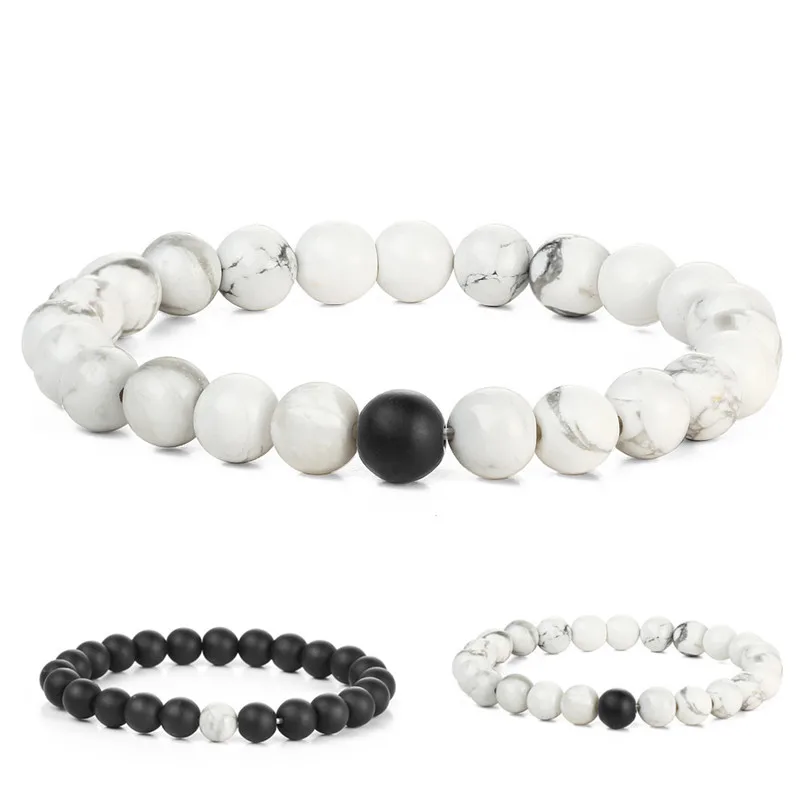 Мужской браслет с натуральным камнем, матовый черный браслет ручной работы с бирюзой и бусинами, 2019