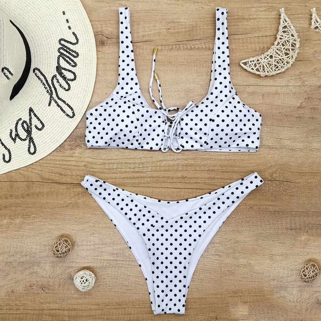 Комплект бикини в горошек, пуш-ап, купальник для женщин с низкой талией, бикини 2020, купальник Mujer, галстук, Бабочка, бикини, купальный костюм для женщин