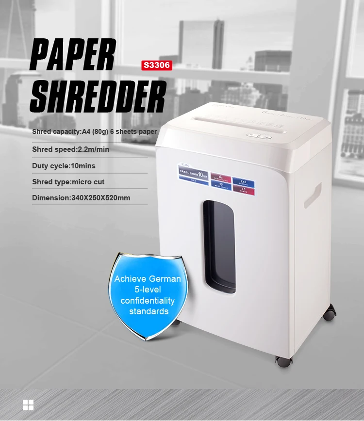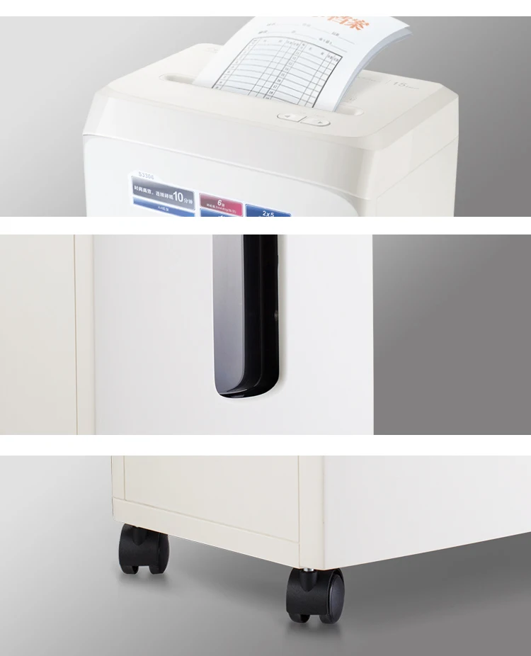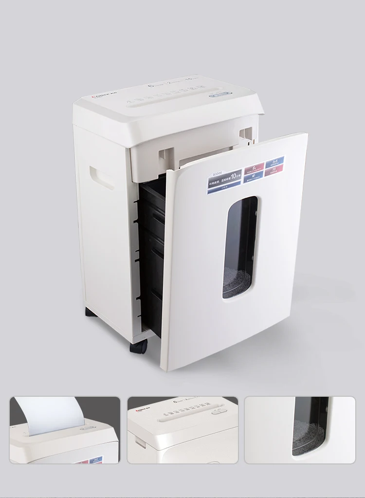 Описание Объем Shred: A4 (70 г) 8 листов бумаги Размер шреда: 2*12 мм Уровень шума: 55 дБ Shred Тип: micro cut Скорость Shred: 2 м/мин Рабочий цикл: 10 минут Бесшумный нарезанная бумага Оценку в пять звезд конфиденциальными Точность режущего инструмента Точная резка, эффект разрыва бумаги до 2х12 мм Защита от перегрева Автоматическое выключение, когда машина перегревается Интеллигентая (ый) энергосбережения