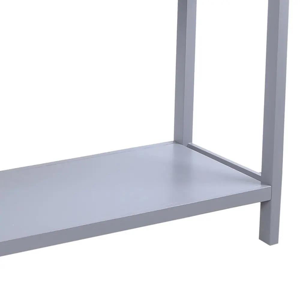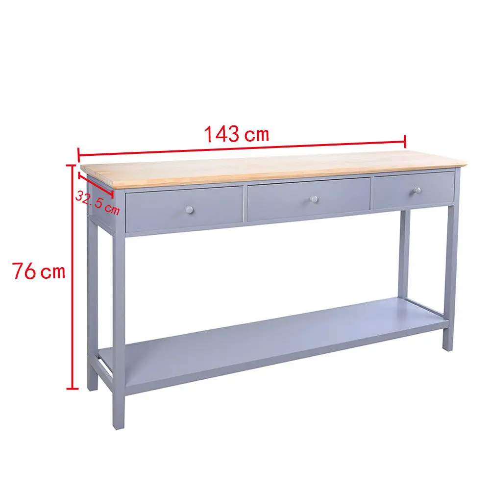 Создайте схему, сочетающуюся с деревенской привлекательностью с этим консольным столом, завершенным в голубом сером тоне. С тремя ящиками и нижней полкой, он отлично выглядит, показывая Семейные защелки и свежие цветы во время укладки столовых приборов.