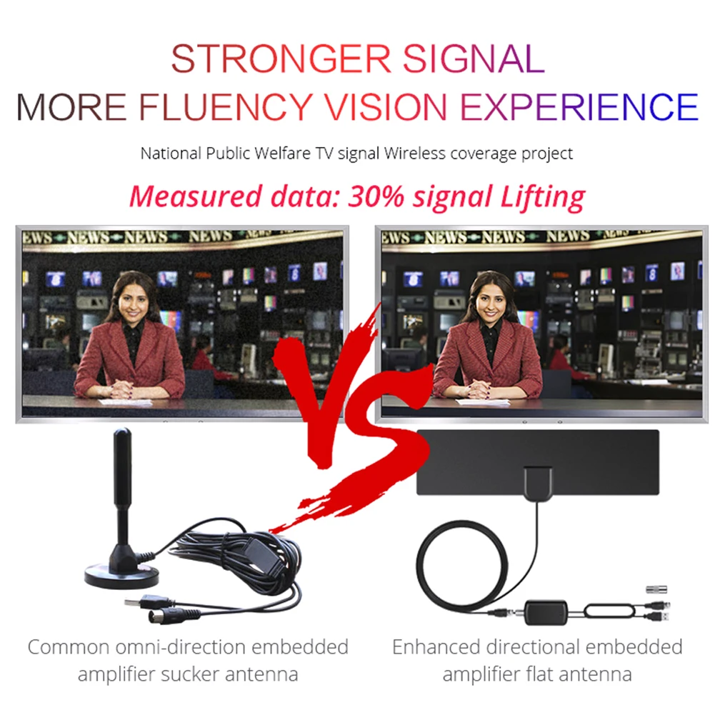 4. Делает усиленную антенну более легким для вас, чтобы разместить ее в вашем доме, чтобы получить лучший прием, особенно для клиентов, чьи телевизоры находятся довольно далеко от окон. Смарт-адаптер питания IC USB со встроенной защитой от перенапряжения поможет, если в телевизоре нет выхода USB для подключения ТВ-антенны к блоку питания.