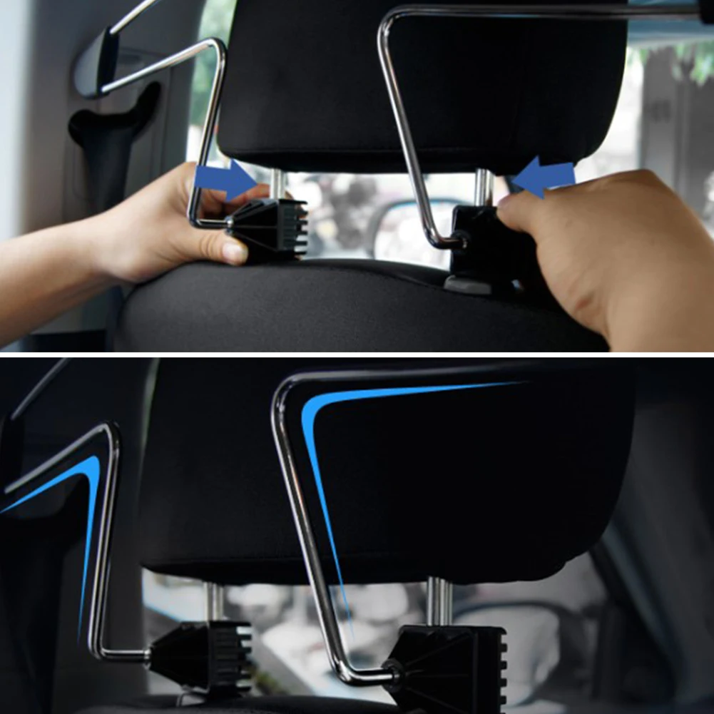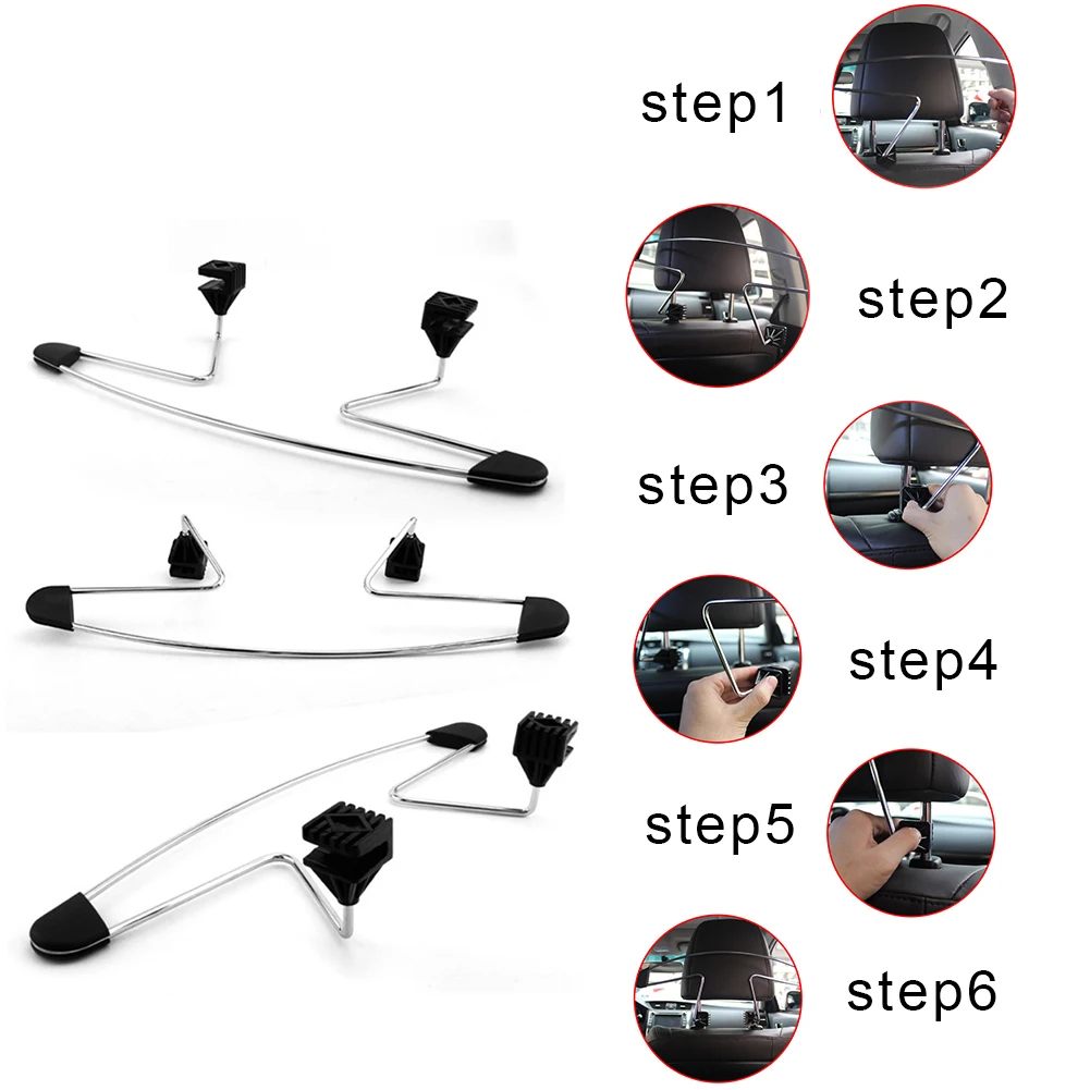 * 4. Простая установка и удаление. Вставьте/вставьте стержни для подголовника в кронштейны и закрепите вешалку с кронштейнами.