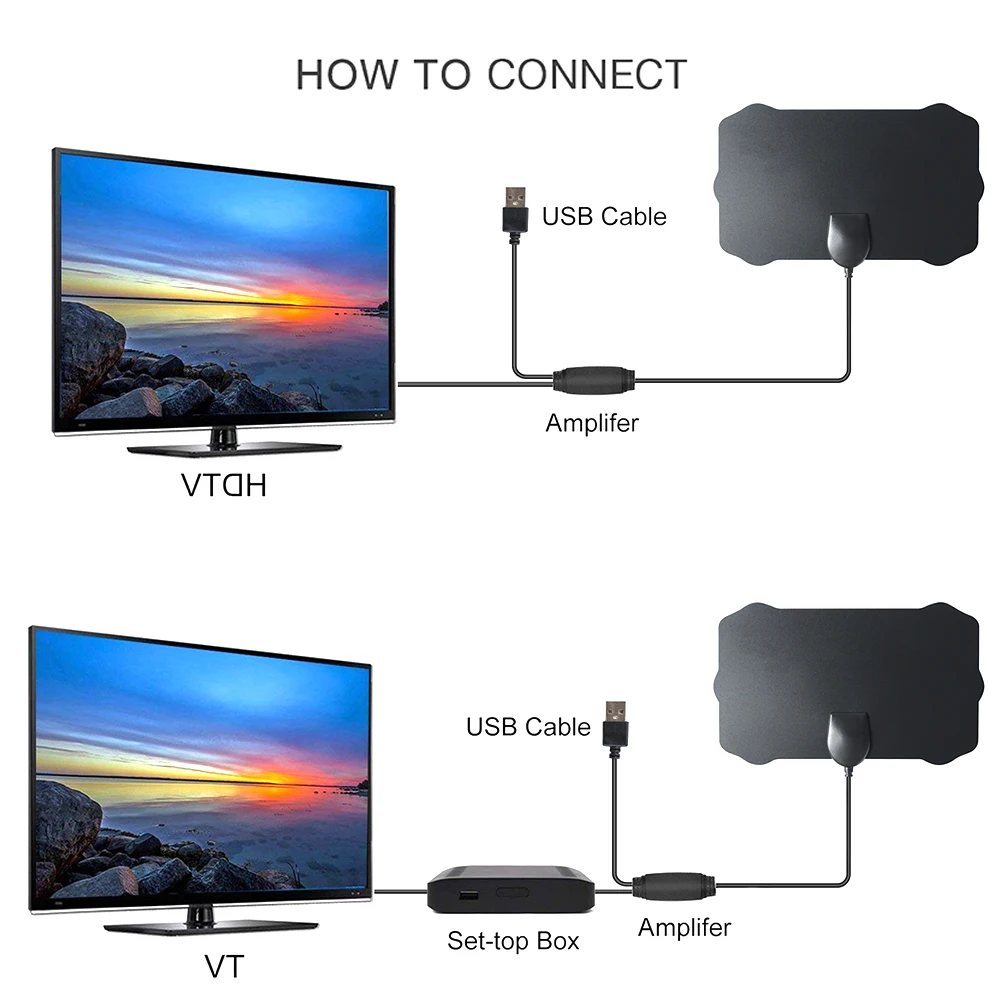 Шаг 1: Подключите конец подключенного коаксиального кабеля к разъему ANT/IN на задней панели телевизора или цифрового конвертера, подключите штекер USV к usb-порту телевизора или цифрового конвертера.