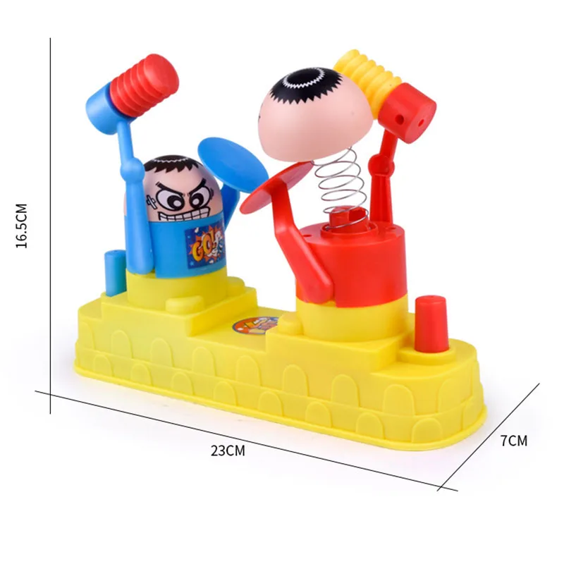 Это набор детских игр, настольные игры, двойные, чтобы играть в игрушки-роботы. Используйте маленький молоток, чтобы ударить остальные головы, другая сторона может быть защищена щитом. После нескольких хитов голова куклы отскакивает и выиграет.