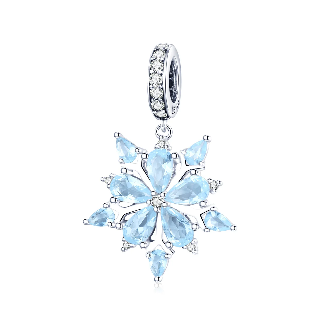 Высокое качество, серебро 925 пробы, зимняя Снежинка, синий CZ, Элегантные Подвески, кулон, подходят, ювелирные ожерелья с кулоном, мода SCC940
