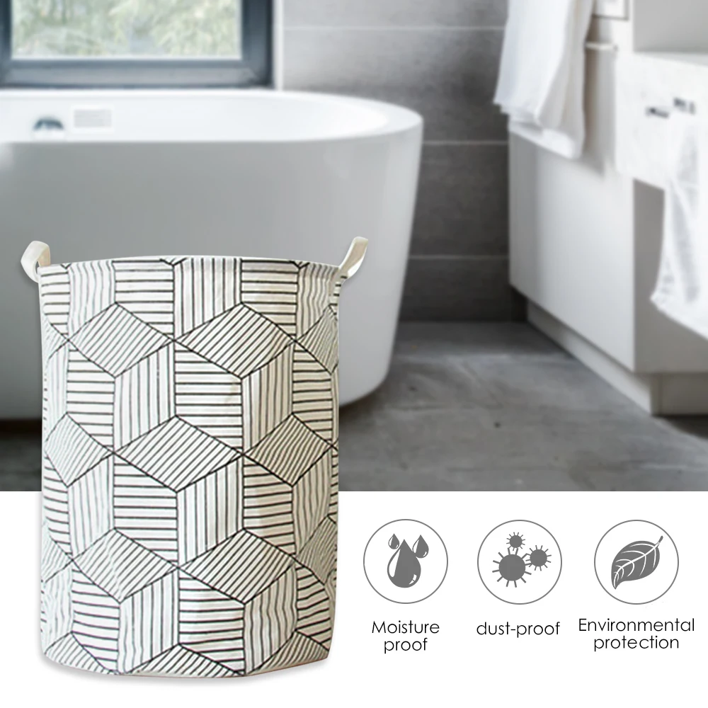 Хлопковая ткань Ramie: она изготовлена из 100% хлопковой ткани Ramie + водонепроницаемого полиэтиленового покрытия для сохранения сухости и долговечности | Большой размер: 19,7 H × 15,7 D дюйма (50 × 40 см), достаточно большой, чтобы хранить более 30 вещей | Дизайн геометрии: стиль геометрии может быть более подходящим для вашего стиля комнаты | Сохраните свою комнату: Наша корзина для белья складная, Которые могут быть быстро сложены, когда не используются, чтобы сэкономить больше места для вашей семьи | Многократное использование: бункеры для стирки могут использоваться в качестве хранения одежды, домашнего текстиля, хранения игрушек, хранение детских товаров и хранение домашних животных.
