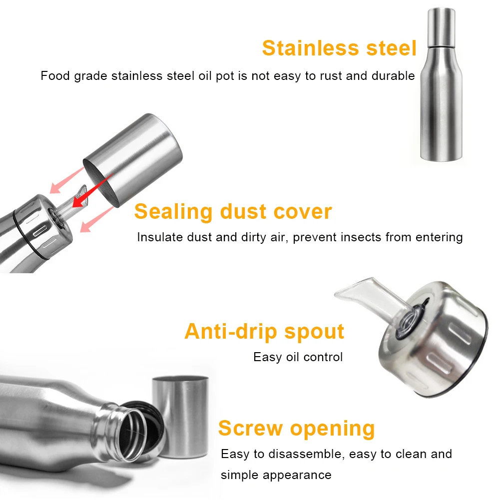 * 3. Очистка: антикапельная конструкция для предотвращения протечек масла и контроля использования масла точное Предотвращение отходов и хорошее для здоровья, сохраняя горшок чистым и сухим. Большой рот удобен для заправки масла. Крышка защищает масло от пыли.