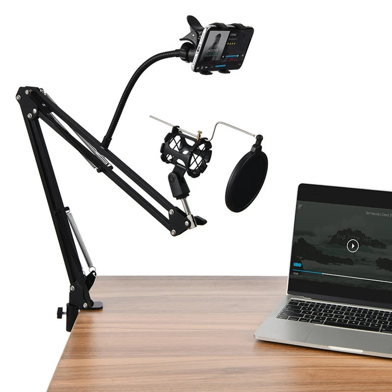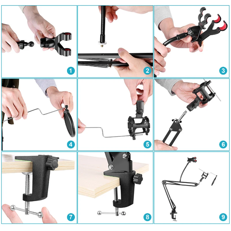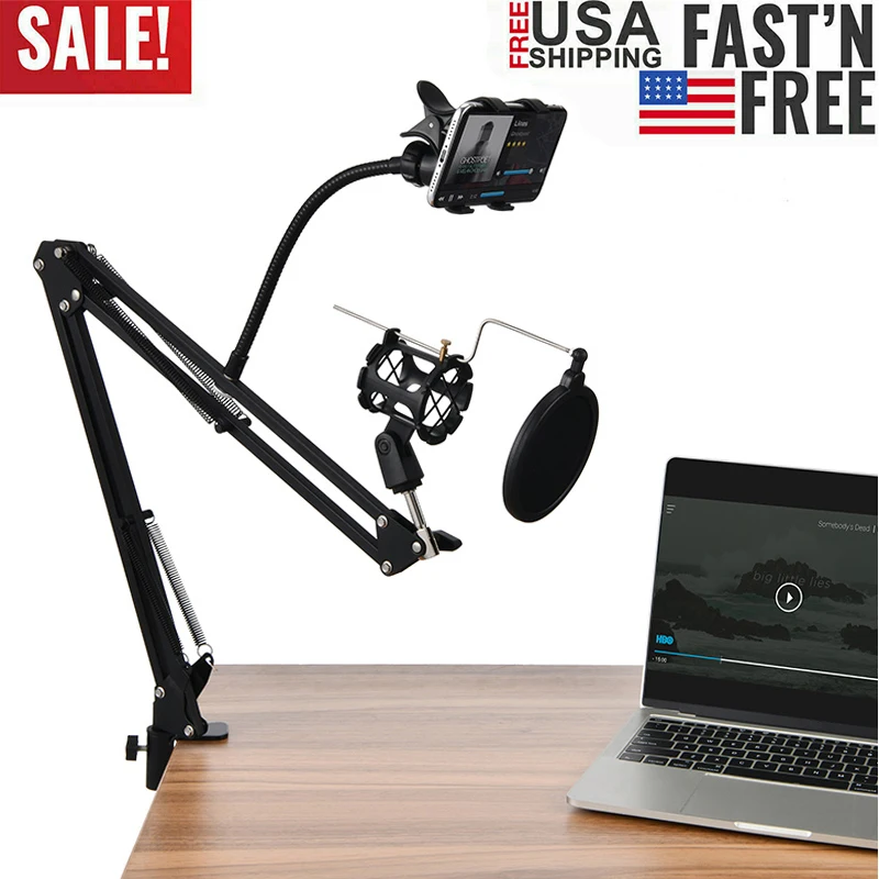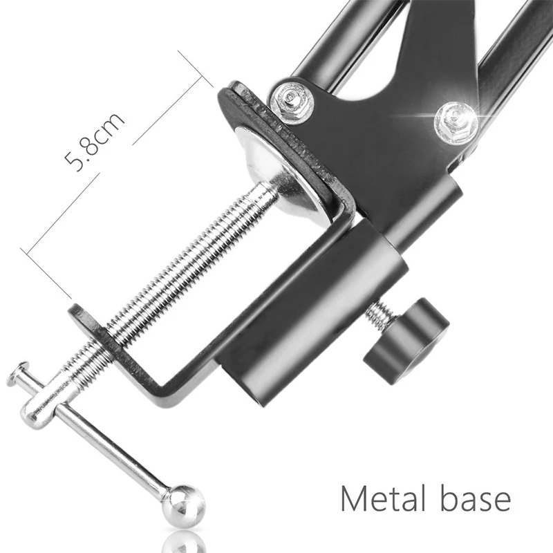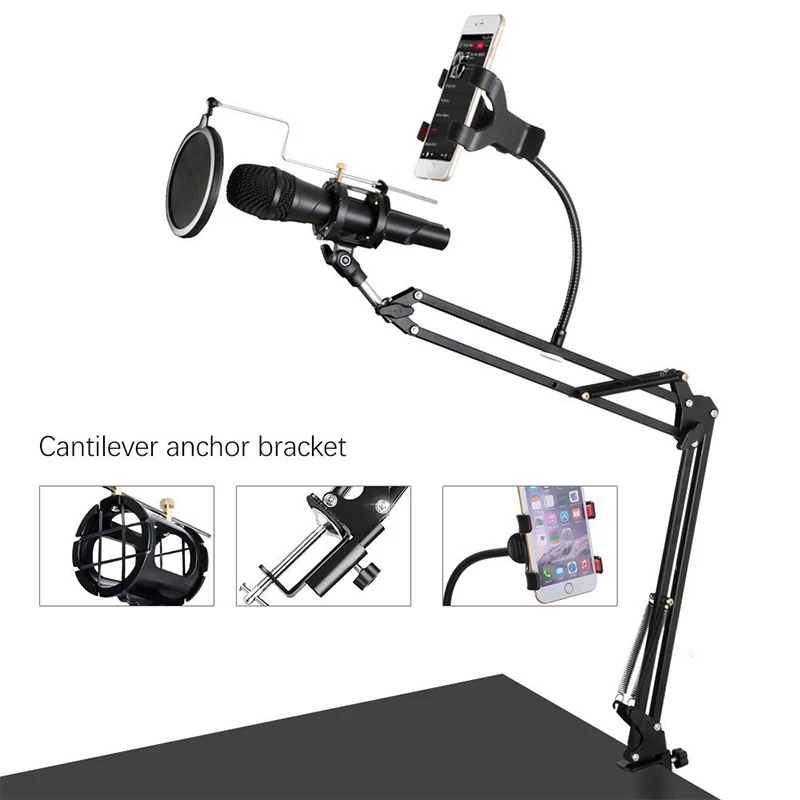 Портативная Складная и регулируемая подставка для микрофона: ее можно легко установить на стол и настроить под любой подходящий угол и высоту, чтобы показать ваш идеальный голос. Также удобно носить с собой. Стальная основа типа блокировки: основание с закручивающимся замком изготовлено из высокопрочного металлического материала. Достаточно прочный для длительного зажима с стабильной фиксацией. Phone вышлите ваш заказ прямо к этому поставщику анти Вибрационный Источник: http:/может держать ≤ 6,3 дюймов Смарт-телефонов, таких как iPhone, iPad mini, Samsung, HTC, Blackberry, LG, ZTE, Xiaomi и т. д. Держатель микрофона шириной 40 мм: подходит для большинства микрофонов на рынке, Высококачественная защита от распыления Звукопоглощающая крышка: хорошо защищает микрофон во время использования и обеспечивает лучшую передачу звука.