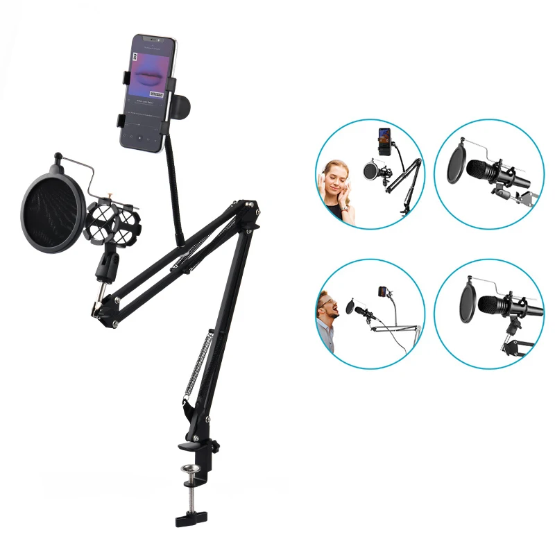 Наш Настольный консольный стенд будет плюс к вашему времени шоу. Противоударное Крепление изготовлено из твердого материала, что позволяет эффективно уменьшить трилку, вызванную вибрацией. Поп-фильтр для ветрового экрана микрофона защищает микрофон от излишка слюны/слюны и помогает получить лучшие голосовые записи. Этот набор подставки для микрофона подходит специально для студий, записи, вещания и т. д. Просто позвольте вам наслаждаться беззаботной работой перед зрителями