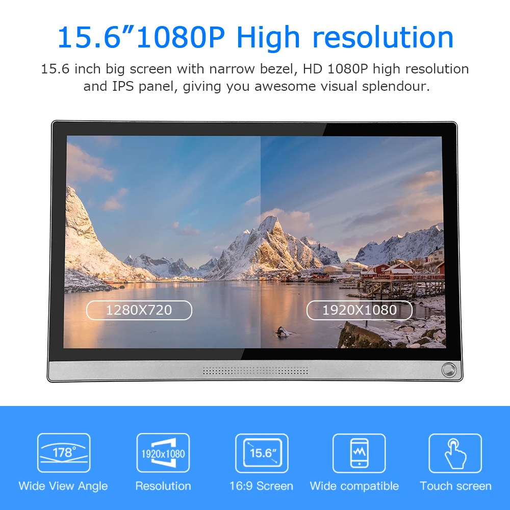 1,10 точек сенсорный экран монитор: емкостная сенсорная технология использует до 10 одновременных сенсорных точек, что обеспечивает более легкое использование, более быструю реакцию и более accuate сенсорный экран портативный монитор для вас. 2.15.6» портативный монитор HDMI: 15,6 "большой экран, IPS панели и 1920 × 1080 с высоким разрешением, что создает Блестящий сцена для вас. 3. Второй монитор для портативных ПК: доступен для подключения к ноутбукам с помощью usb-c к usb-c кабелю, режим разделения экрана помогает увеличить ваше визуальное рабочее пространство, улучшая эффективность работы. 4. Хорошо совместим с различными консолями, такими как ваш смартфон, ноутбук, PS4/3, x-box, switch, PC и т. Д. Отлично и accuately Копировать ваш собственный экран устройства к более крупной и более 15,6 дюймовым экраном. 5. Игровой монитор HDMI: Оснащен стандартным входом HDMI, touch sceen также может сделать его удобным для игр. Обратите внимание, что usb-интерфейс кабеля должен быть подключен к вашему дециду для реализации сенсорной функции. 6. Портативный монитор с Чехол: металлический корпус с ЧПУ и поставляется со стильной защитной курткой. Его портативность и элегантный вид делают его идеальным выбором для частых путешественников и деловых людей.