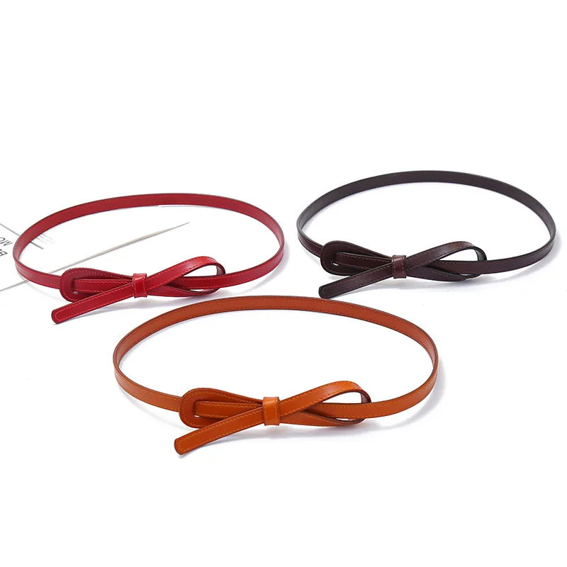 Кожаный тонкий пояс дамы с платье завязанный декоративный тонкий с белым поясом ретро диких кожаный тонкий пояс на талию M311