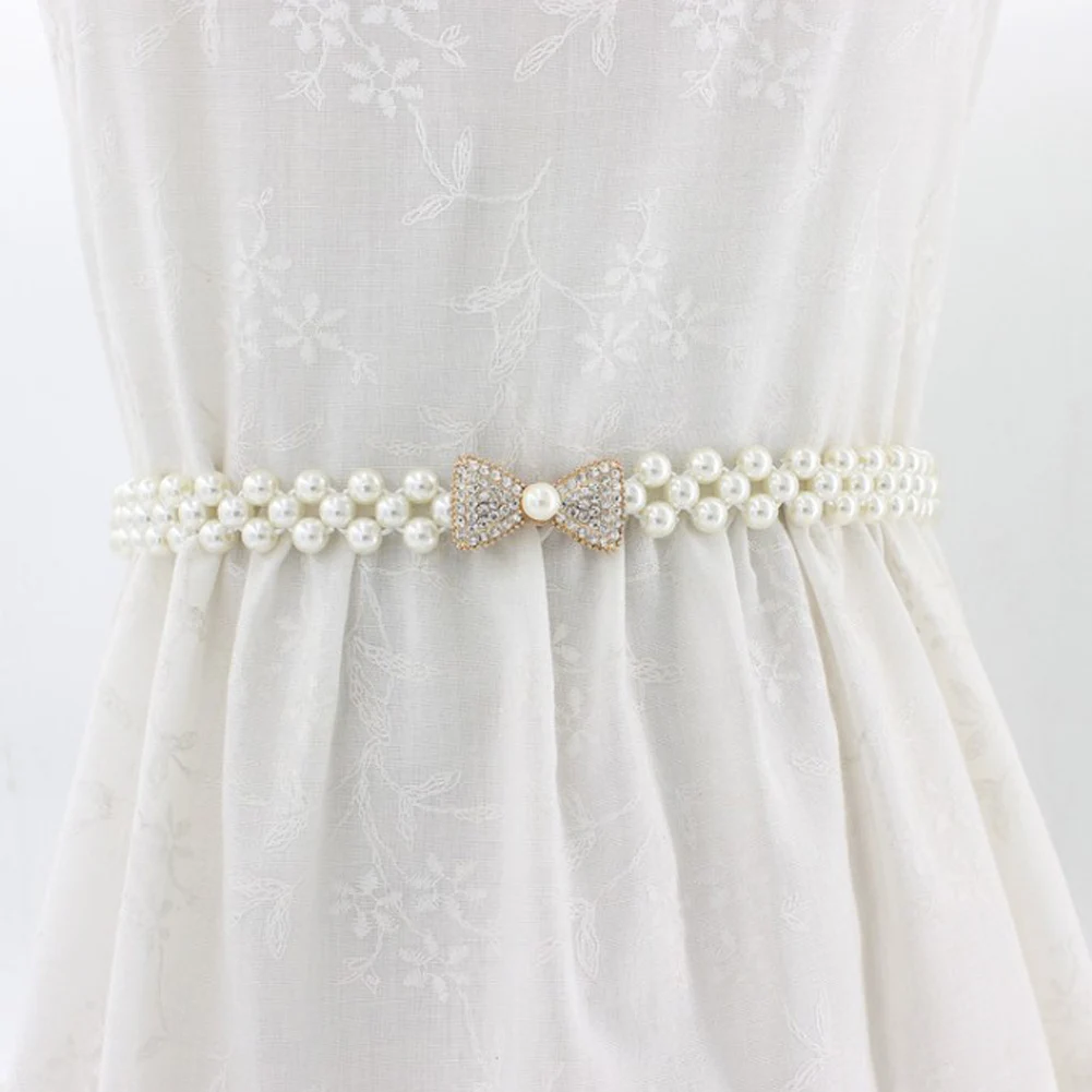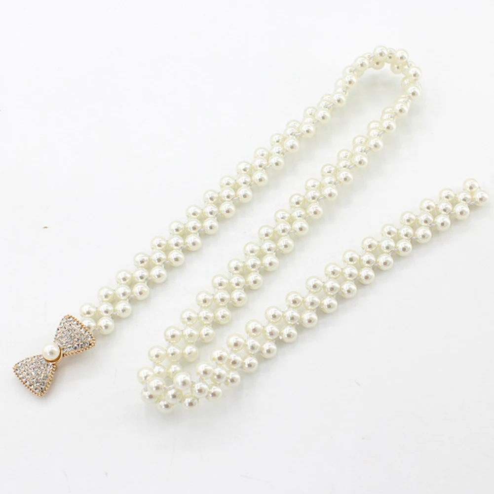 1 шт. элегантный пояс эластичный жемчужный пояс с цепочкой со стразами декоративный пояс