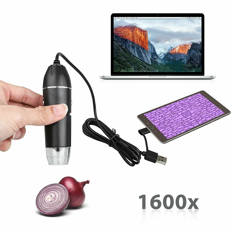 Конструкция 3 в 1 микроскопа: конструкция с разъемом 3 в 1 USB/Micro USB/USB-C, микроскоп может работать не только с смартфоном Android 4,2 + с функцией OTG, но также подходит для компьютеров Windows 7/8/10 и MacBook OS. (Для 3-in-1 1600X микроскоп) Изображение с увеличением и высоким разрешением от 0x до 1600x: микроскоп обеспечивает превосходное качество изображения и записи видео на близком расстоянии, позволяя вам видеть внутреннюю структура, строение кожи и т. Д. Фокус может быть отрегулировано одной рукой. Настраиваемая яркость: яркость микроскопа с 8 светодиодами может быть отрегулирована, чтобы четко осветить тему через регулятор яркости, что делает светильник мягким и не ослепляющим по всему рассматриваемом предмету. Синхронизация, запись и измерение: подсоединил этот ручной микроскоп к приборам, вы можете запечатлеть изображение скриншота и даже записать видео с установленным по. Обратите внимание, что программное обеспечение для измерения работает только для Win10, Win8, Win7, XP, MAC. Широкое применение микроскопа: Портативный Цифровой Микроскоп USB-это не только полезный и забавный инструмент для увеличения для детей, студентов, коллекционеров, тестеров, но и подходит для тех, кто любит познавать микроскопический мир. Легкость в использовании и переноске: установите программное обеспечение, подключите устройство, чтобы вы могли осмотреть микроскопический мир с помощью этой камеры микроскопа. Поставляется с поворотной подставкой, чтобы сделать ваше наблюдение полным и удобным в любых местах.