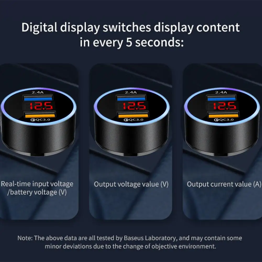 Зарядное устройство с цифровым дисплеем, двойной USB, автомобильное зарядное устройство 3,0 USB, 12 В, автомобильное зарядное устройство для мотоцикла, прикуриватель напряжения, универсальный адаптер # L4