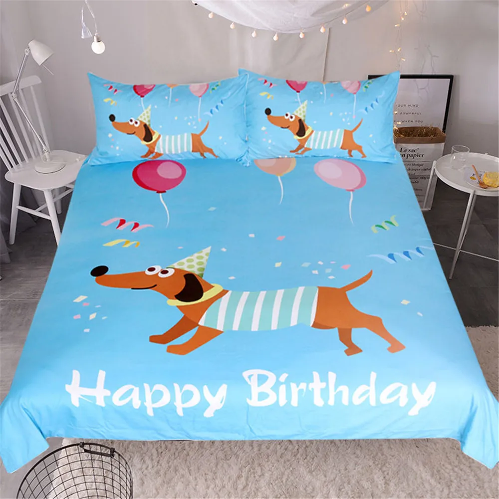 Набор пододеяльников для собак, ручная работа, Такса, силуэт на монохромном точечном фоне, Детская тема, декоративная кровать из 3 предметов