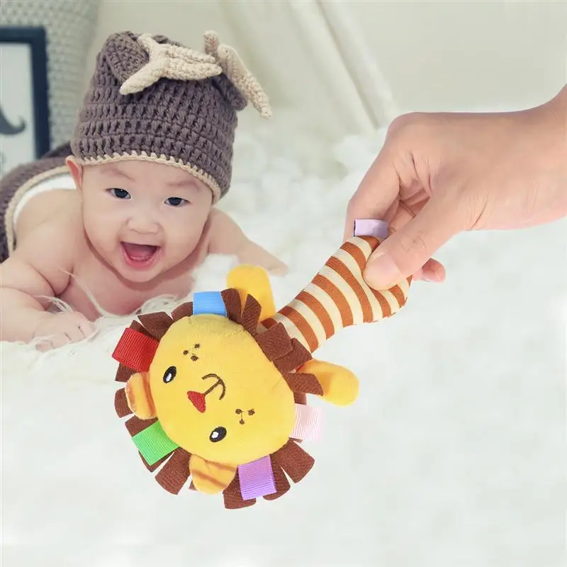 1 * TOYMYTOY 0-3 года детские дети милые Мультяшные Животные Мягкие плюшевые погремушки ручные колокольчики ББ звук образовательные Забавные игрушки ручной погремушка игрушки куклы-Младенцы подарок для новорожденного (Лев)