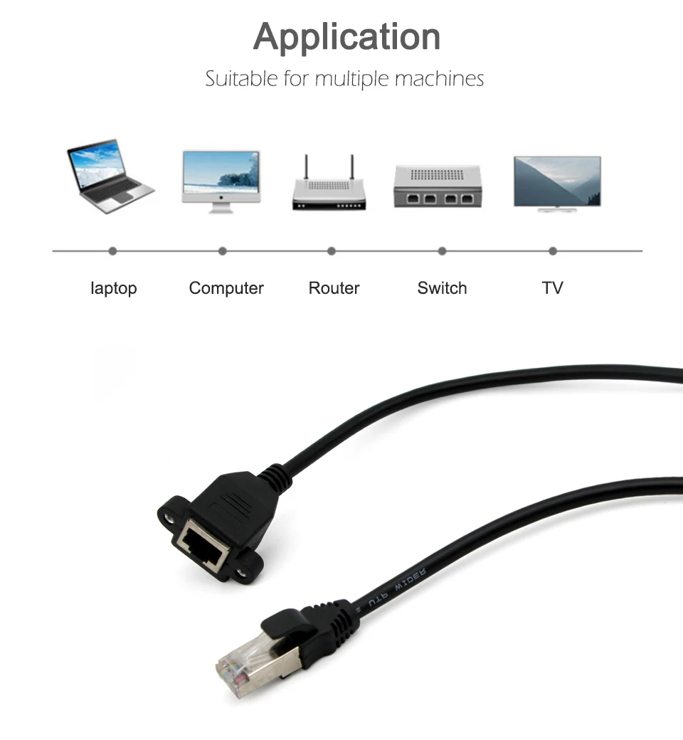Особенности: Гибкая, прочная огнестойкая особенность Подходит для конфигурации разъема RJ45. Электродный стержень Материал: Стандартный 8-ядерный Интерфейс: стандартный сетевой интерфейс RJ45 Материал: новый высококачественный ПВХ, маслостойкость, пятен, устойчивость к коррозии, защита от помех Параметры: Наименование товара: RJ45 Ethernet кабель Соединительный удлинитель Компьютерные кабели и соединители: штекер к гнезду RJ45 Ethernet кабель Lan удлинитель Тип разъема: удлинитель Ethernet Один конец: штекер RJ45 Другой конец: гнездо RJ45 крепление панели Интерфейс: стандартный сетевой интерфейс RJ45