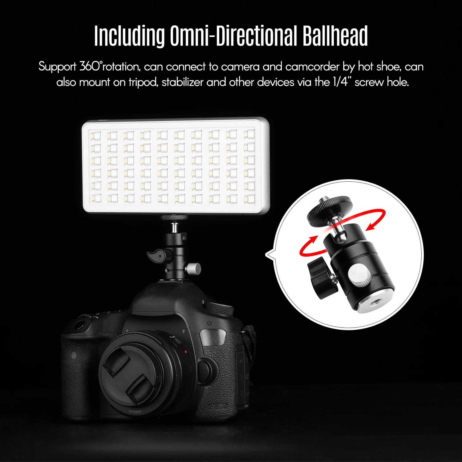 Поставляется с всенаправленной шаровой головкой, которая может помочь крепить светильник RGB на штатив, стабилизатор или другие устройства с винтом 1/4 дюйма.