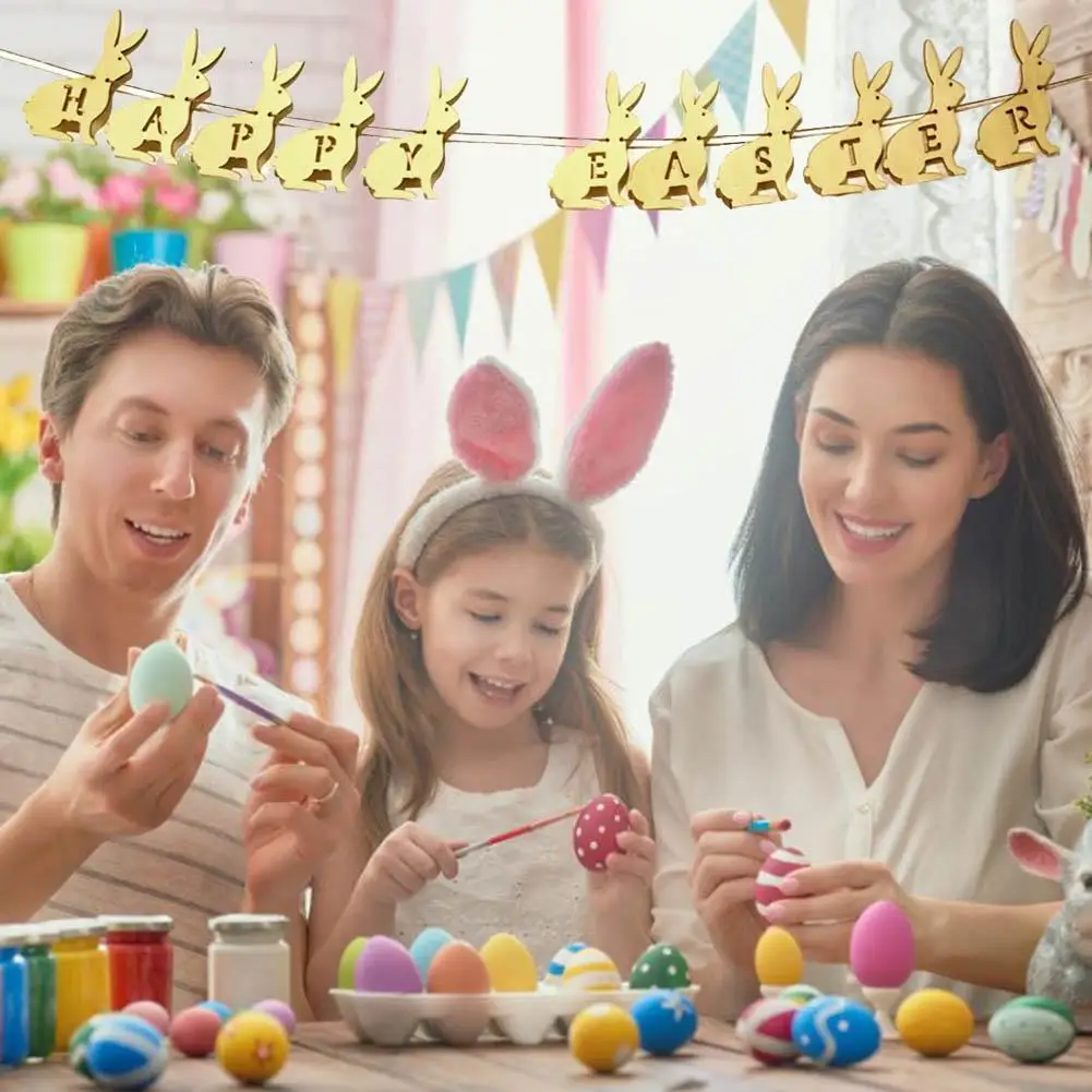 Деревянный Пасхальный DIY Ручная работа кролик кулон.2. Цвета могут немного отличаться из-за различных дисплеев, спасибо за понимание.
