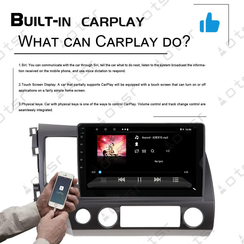 1. Enhanced User Interface More advanced than ever before, features a responsive, powerful and intuitive touchscreen user interface that is easy to use and highly customizable. Clearly, Our UI is designed specifically convenient for driver 2. Built-In Bradio Tuner(RDS Enabled) The Low IF Tuner, High Performance CHips Radio Chip NXP6686, High Performance Receiver Manual & Automatic Search Preset Stations(18FM,12AM) 3. Safely on Driving The Car stereo comes equiped with built-in Bluetooth and phonebook function. You can sync the phonebook from your mobile phone to this unit and then make hands-free mobile phone operation conveniently and quickly. You can also enjoy wireless music playback from your bluetooth device. 4. Hear music on your own way Supports up to 192kHz/24bit resolution in MP3 WMA ACC RM FLAC WAV formats providing a superior audio Supports SD card/ USB drive up to 64GB with FAT32 or ntfs Format Supports Video Formats: RMVB/AVI/MPG/MPEG/VOB/MOV/ASF/FLV/3GP/MP4,etc. 5. EQ Settings , Build Your own Sound And with the built-in 4*50 W amplification, music sounds clear even at high volumes. Tailor the sound to your personal preference with the 9-band graphic equalizer. Pop, Rock, Jazz, Classical, Flat, User, Voice Multiple customization option's let you adapt the audio experience to your liking. 6.G+G Capacitance Screen Capactive screen is not only used to operate, is more important to enjy viewing screen content, transmittance glass G+G capacitance screen up to 95%, very little effect on the screen, graceful finger paddle, control feel very smooth. 7. Supports 4K Video Format 4K has arrived and is ready to replace 1080P as the highest definition video format. This allows for the playing of games or watching of video without missing any details due to the high definition. 8. 1024*600 High Resolution, Multi-Touch screen The 1024*600 high pixel density provides amazingly vibrant video and visual effects. While the multi-touch screen offers a remarkably fluid and intuitive operation. 9. Original Steering Wheel Control. Compatible with most of the steering wheel control functions. Easy to switch songs, channels and adjust volume to provide you a safer and more enjoyable journey Please Note: for the unit's cable come with canbus, it can directly use buttons , for the unit's cable without canbus, you need set the buttons study function 10 Support Wi-Fi, 3G / 4G internet You can keep connected through Whatsapp Twitter, Facebook, G talk, G mail ,wave and other Google services. 11. Support Mirror Link Any content from Android or IOS smartphone can be mirrored onto this unit screen ,so you can watch videos on the bigger display , for android phone, you can even achieve bidirectional control with a USB cable to access your phone book , map , music and more. 12 Support GPS + Glonass Dual satellites In order to more accurately determine the locations, looking for the right itinerary , we use GPS +Glonass dual satellite position system you can get access to different online maps , such as Google map ,IGO ,Sygic Waze and other GPS program.