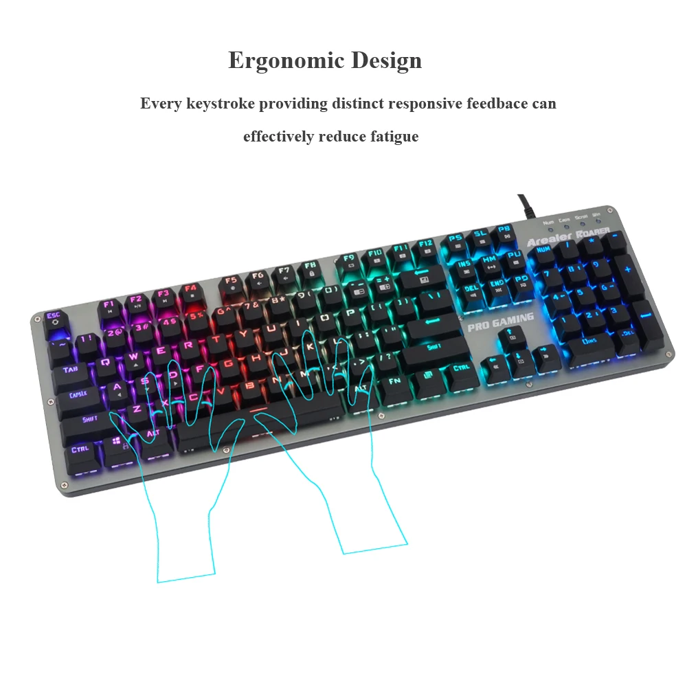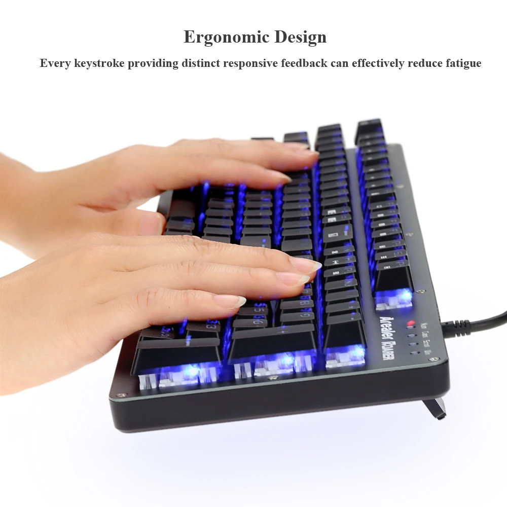 Механическая клавиатура с синим переключателем, со звуком нажатия и быстрым реагированием, приносит вам самые механические тактильные ощущения. Технология Anti-ghosting позволяет работать одновременно со всеми клавишами. Полностью программируемый светодиодный светильник с подсветкой, подсветка RGB для разных игровых режимов и 9 заданных световых эффектов с 21 регулировкой яркости и 10 уровнями регулировки частоты. Более того, программное обеспечение для макросъемки, чтобы сделать идеальную клавиатуру для игр.