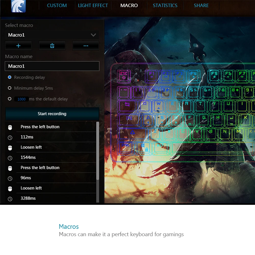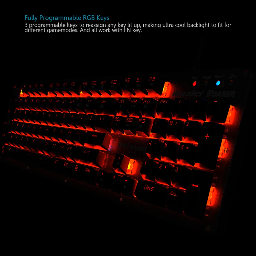 3 программируемых клавиши, 16,8 млн цветов, чтобы использовать любой включенный ключ, что делает ультра прохладную подсветку, подходящую для различных игровых режимов. И все работают с клавишей FN.