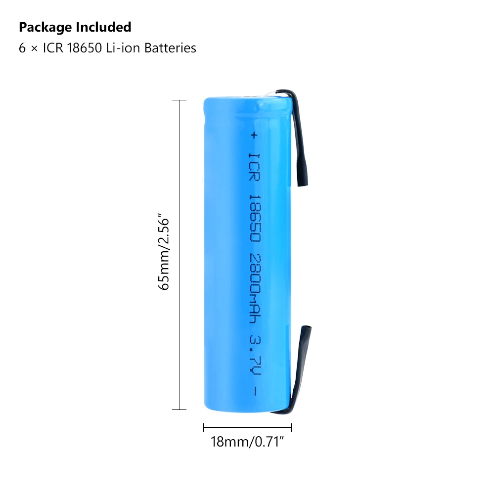 Перезаряжаемый18650 литиевыйАккумулятор с двумя вкладками из никеля для самостоятельной пайки, стабильная скорость разряда, Отсутствие эффекта памяти.