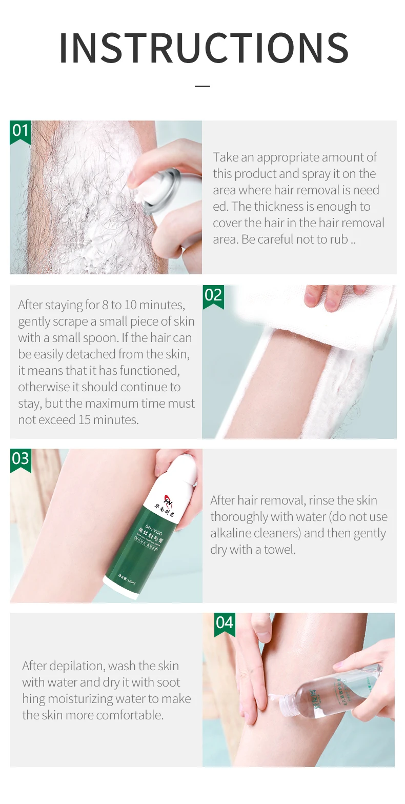 Информация о продукте [Название продукта] крем для удаления волос 120 мл [Ингредиенты продукта] тиогликонат кальция, глицерин, сквалан и т. д. (удаление волос) [Эффективность продукта] мягкое удаление волос, успокаивающее и увлажняющее, гладкая кожа [Применимые части] ноги, руки, волосы на подмышках, волосы на груди и т. Д. Примечание: Не подходит для лица, головы [Подходит для всех типов кожи] Методы использования 1. Возьмите соответствующее количество этого продукта и распылите его на область, где требуется удаление волос. Толщины достаточно, чтобы покрыть волосы в области удаления волос. Будьте осторожны, чтобы не натирать .. 2. После пребывания в течение 8-10 минут аккуратно очистите маленький кусочек кожи маленькой ложкой. Если волосы легко отделяются от кожи, это означает, что они функционируют, в противном случае они должны продолжать оставаться, но максимальное время не должно превышать 15 минут. 3. После удаления волос тщательно промойте кожу водой (Не используйте щелочные чистящие средства), а затем аккуратно высушите полотенцем. 4. После депиляции промойте кожу водой и высушите ее успокаивающей увлажняющей водой, чтобы сделать кожу более комфортной.