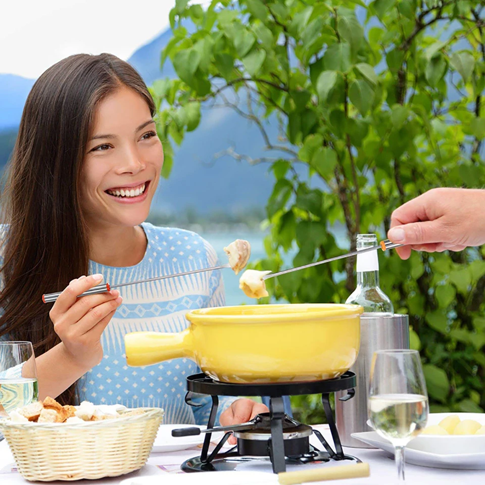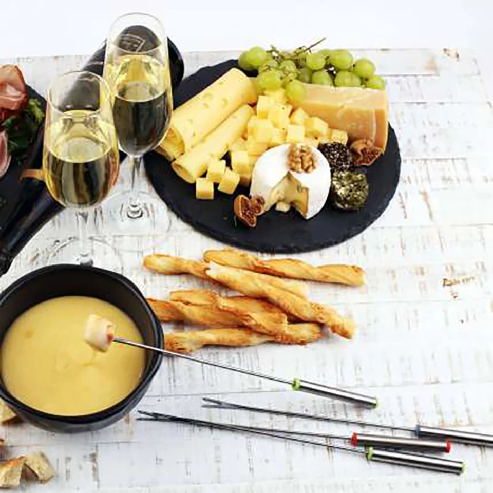 Особенности: Набор вилок из нержавеющей стали безопасен, устойчив к ржавчине, коррозии и долговечен в использовании. Незаменимая посуда для фондю, удобная для погружения фруктов в растопленный сыр или шоколад. Длинная вилка легко держится и позволяет избежать обжига. Легко моется и многоразовый. Подходит для домашней кухни и коммерческого использования.