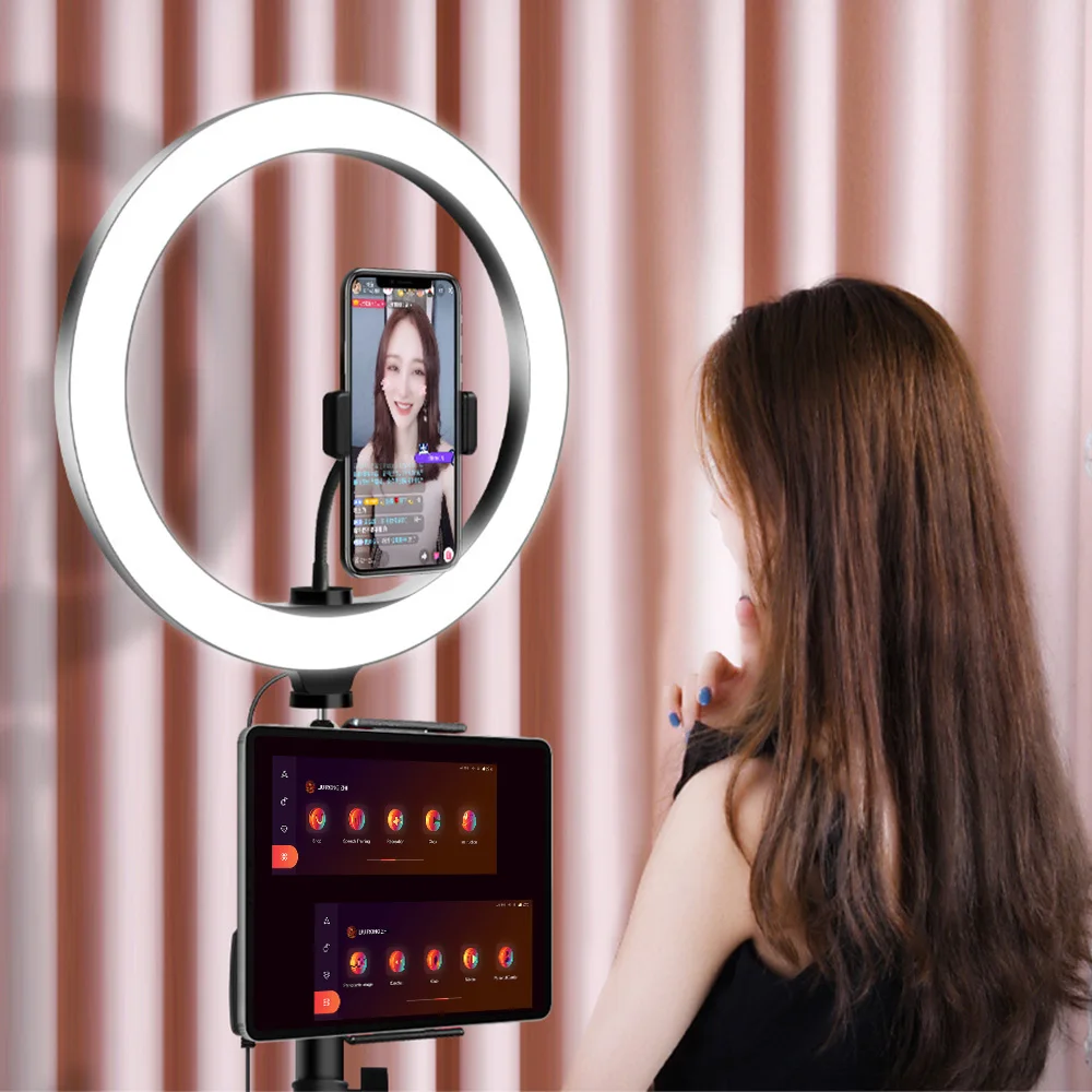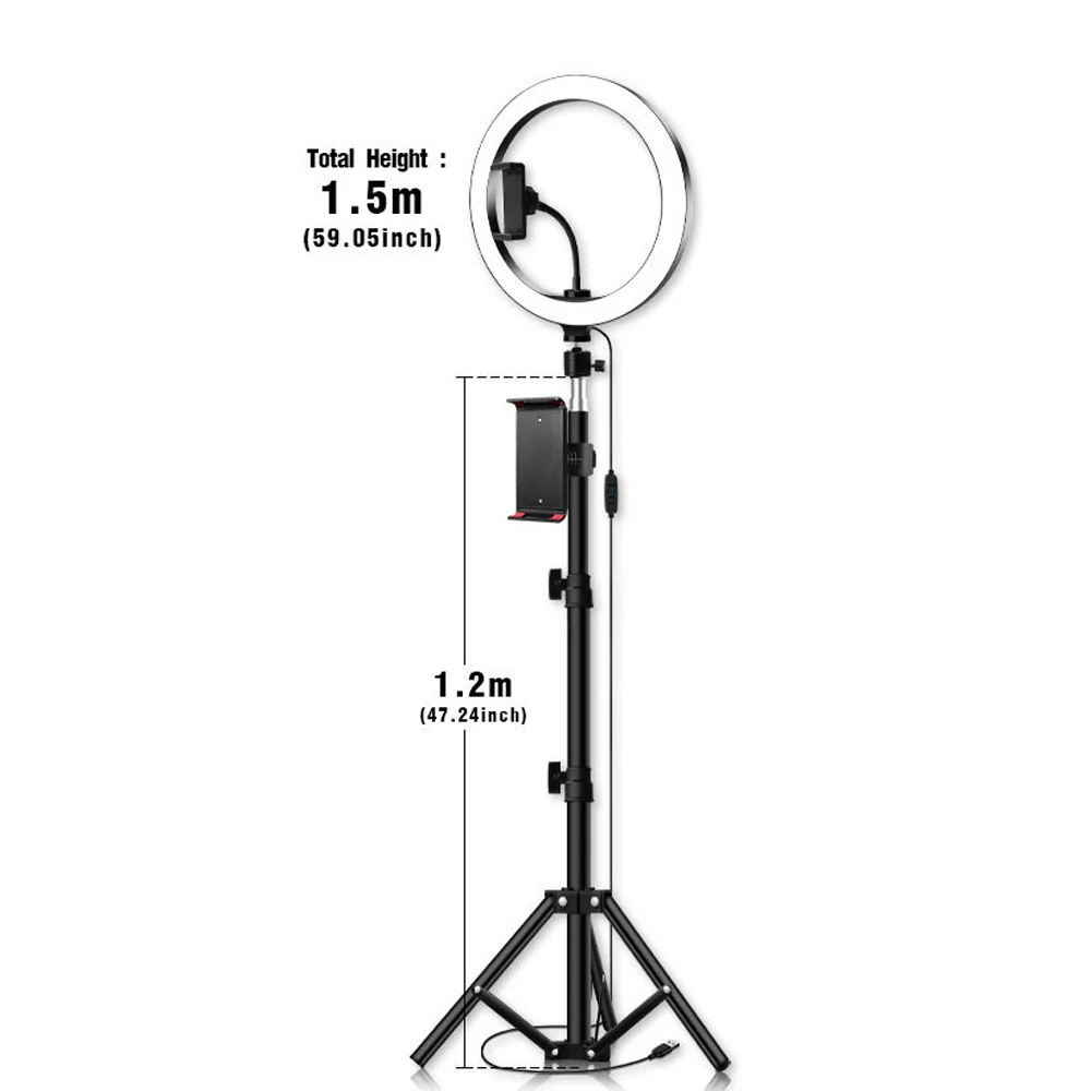 Светодиодный светильник для селфи 26 см/10 дюймов с регулируемой яркостью 10 уровней с штативами для телефона и держатели для планшета для макияжа YouTube
