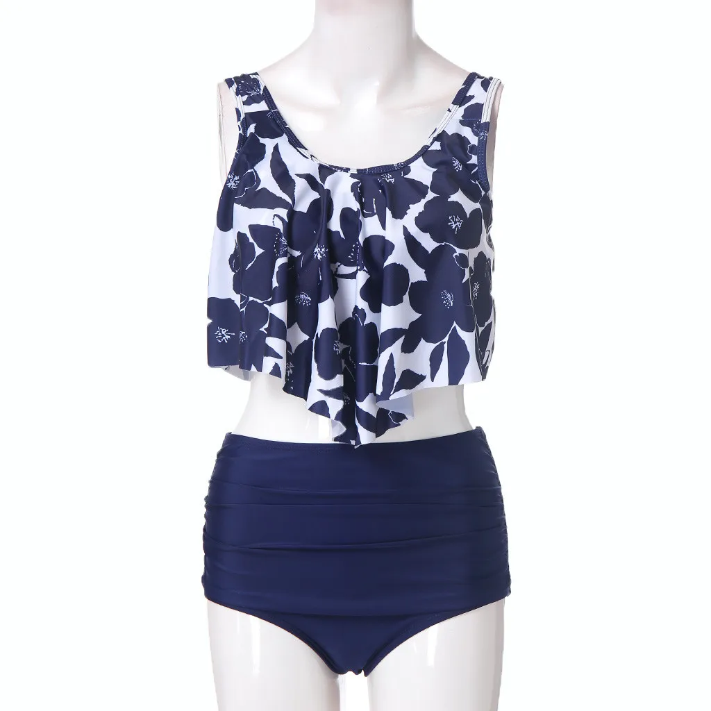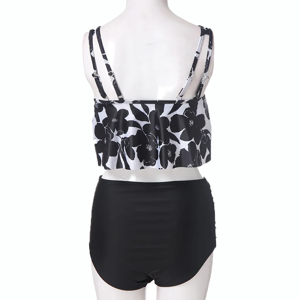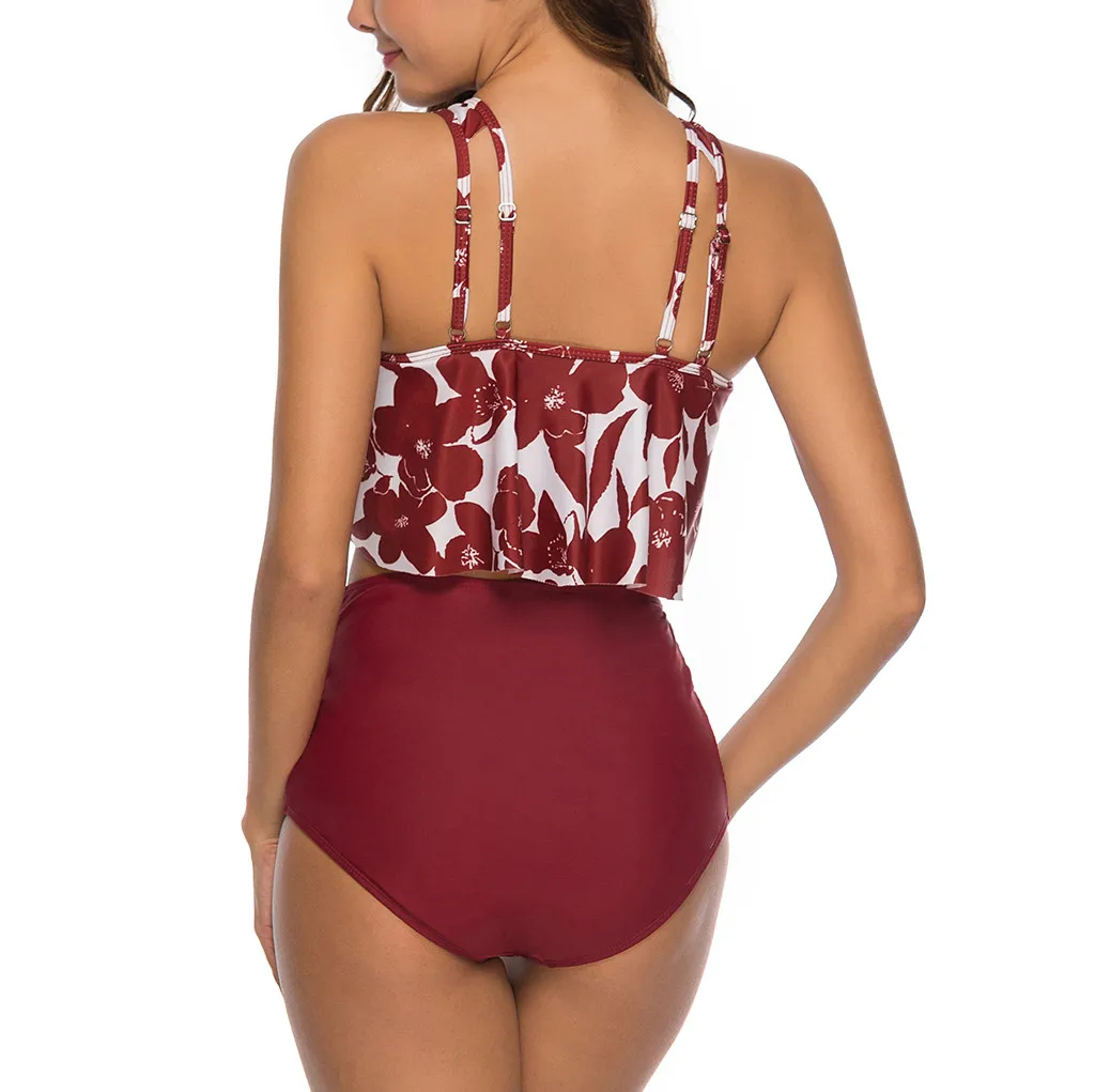 Женский купальник из двух частей, плюс размер, сексуальный, открытая спина, Холтер, пляжный, с принтом, набор купальников