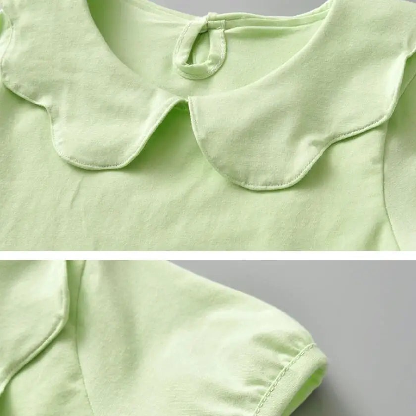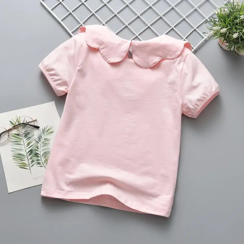Летние футболки для девочек хлопковая футболка с короткими рукавами блузка с воротником «Питер Пэн» для маленьких девочек, рубашка Топы для детей, детская одежда