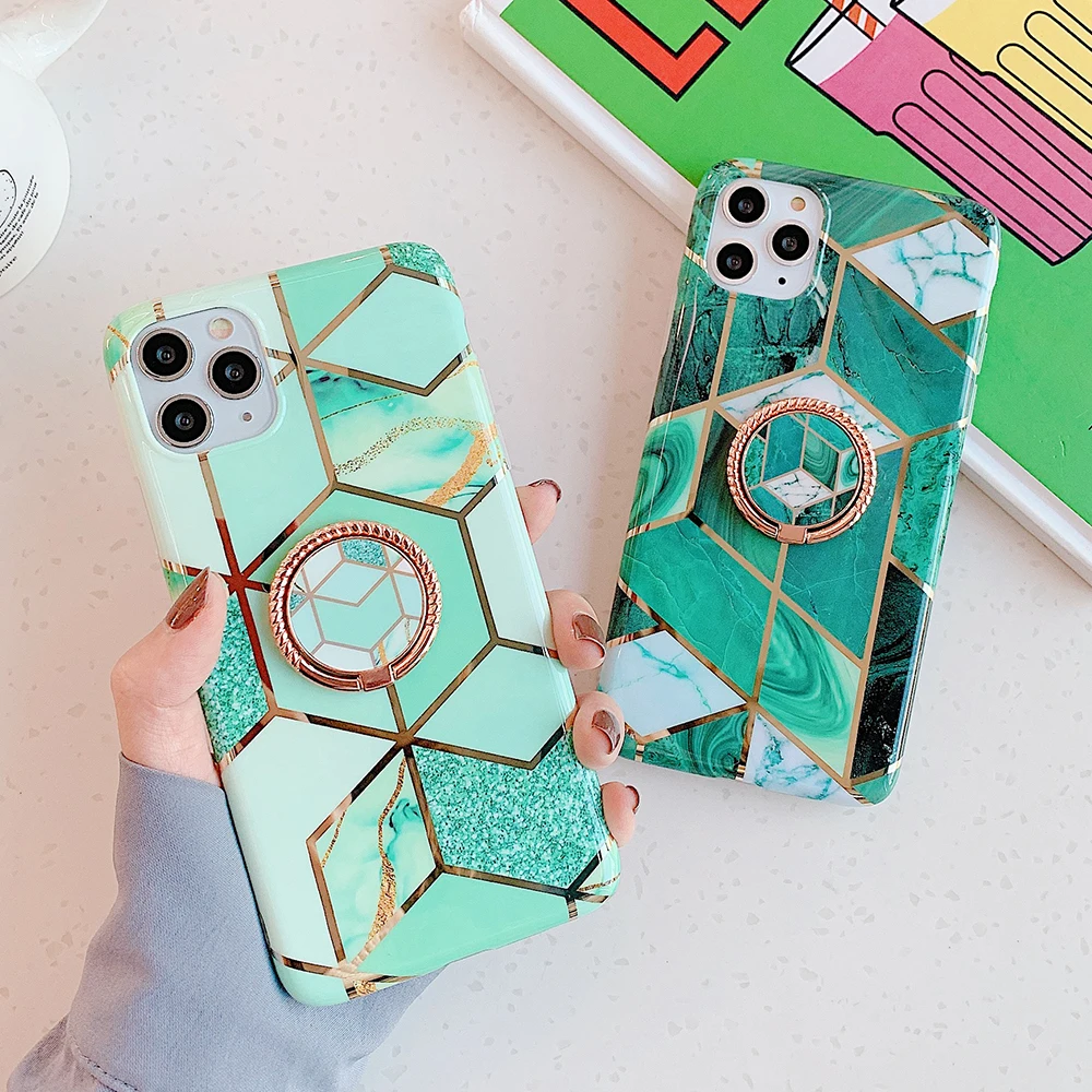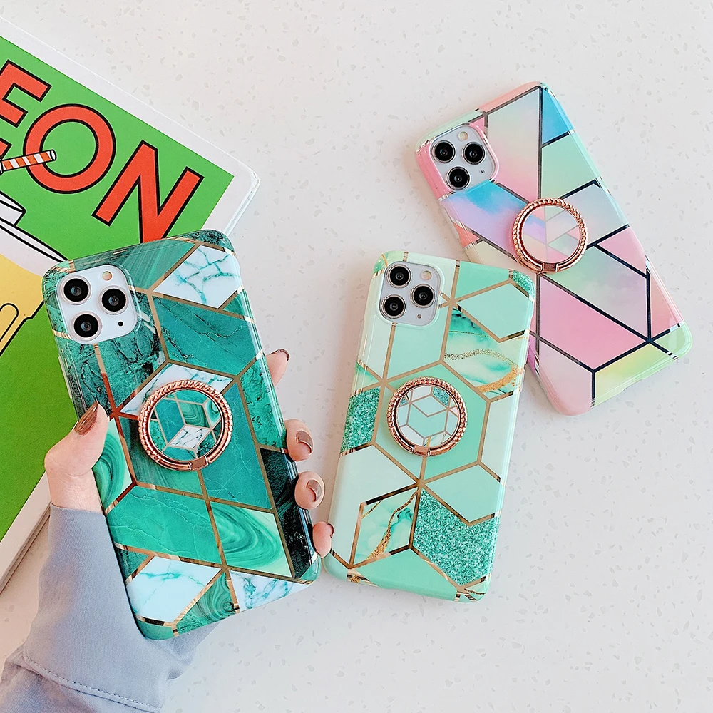 LOVECOM Geometric Marble Metalic Ring Holder Phone Case For Samsung A51 A50 Note 10 8 9 S8 S9 S10 Plus Case Soft IMD Plated Phone Cover
