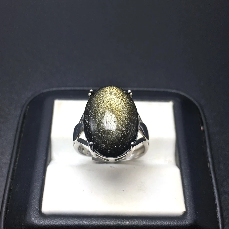 CSJ настоящие натуральные кольца с обсидианом стерлингового серебра 925 пробы с большим камнем золотые глаза обсидиан овал13*18 мм ювелирные украшения для мужчин и женщин Размер драгоценного камня: овал 13*18 мм Вес: 5,1 г Место происхождения: Китай Цепь: прилагается (pandent)
