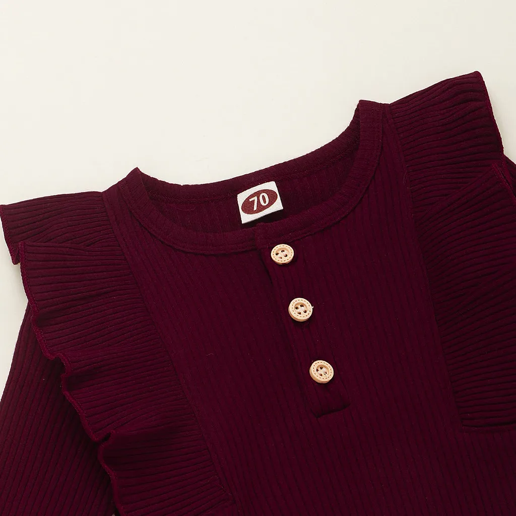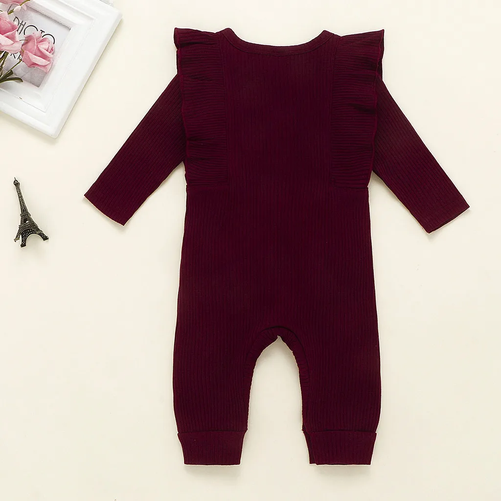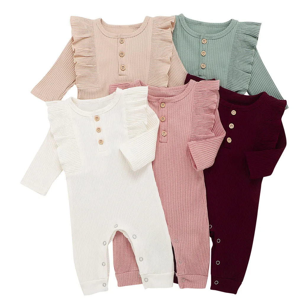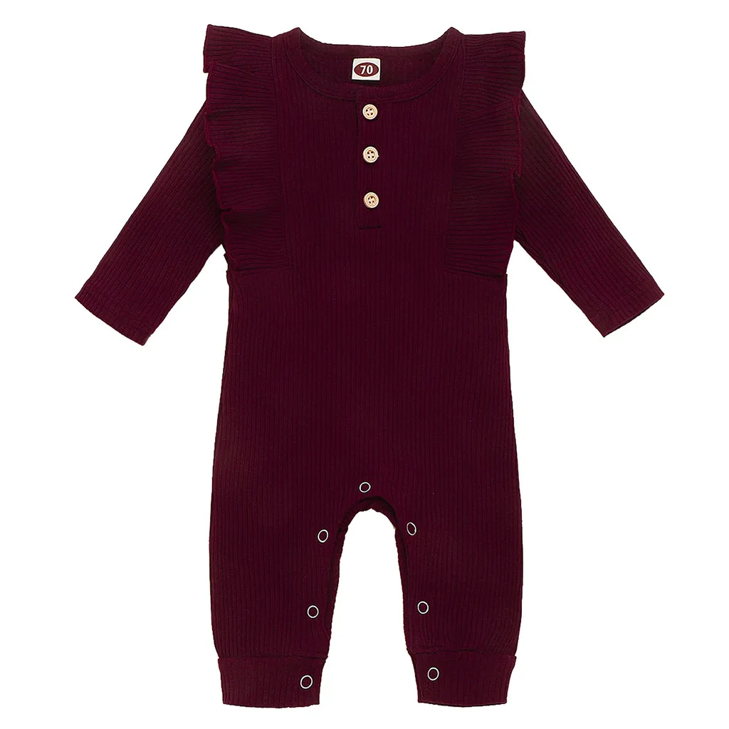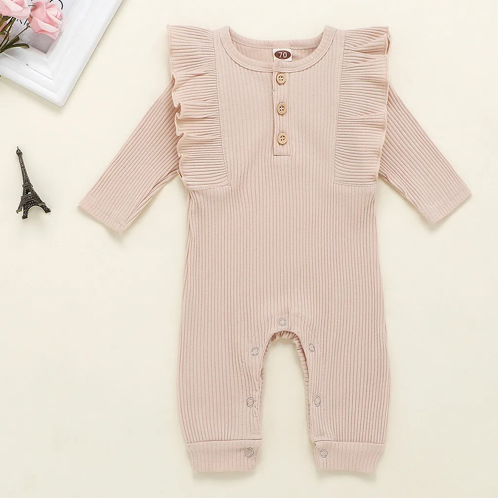 Ползунки с оборками, комбинезон, комбинезон для новорожденных мальчиков и девочек, однотонный костюм на пуговицах, комбинезон для маленьких девочек