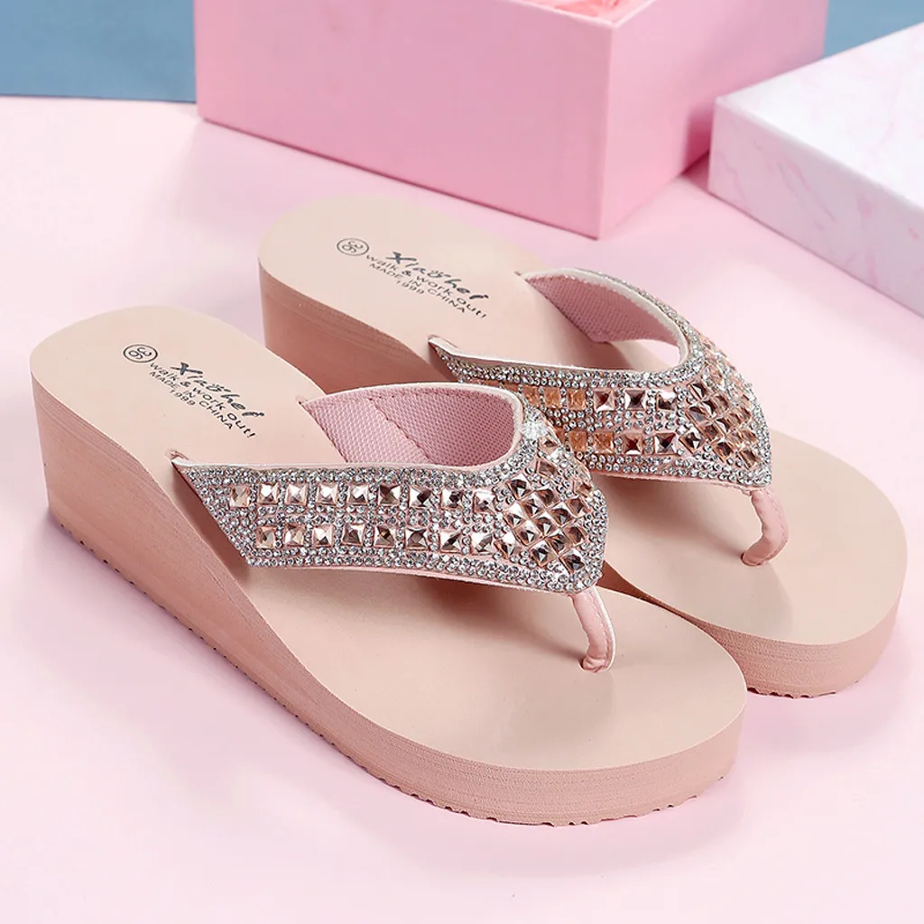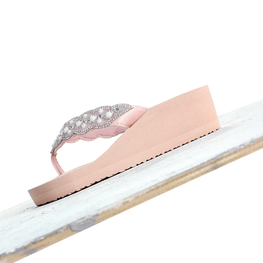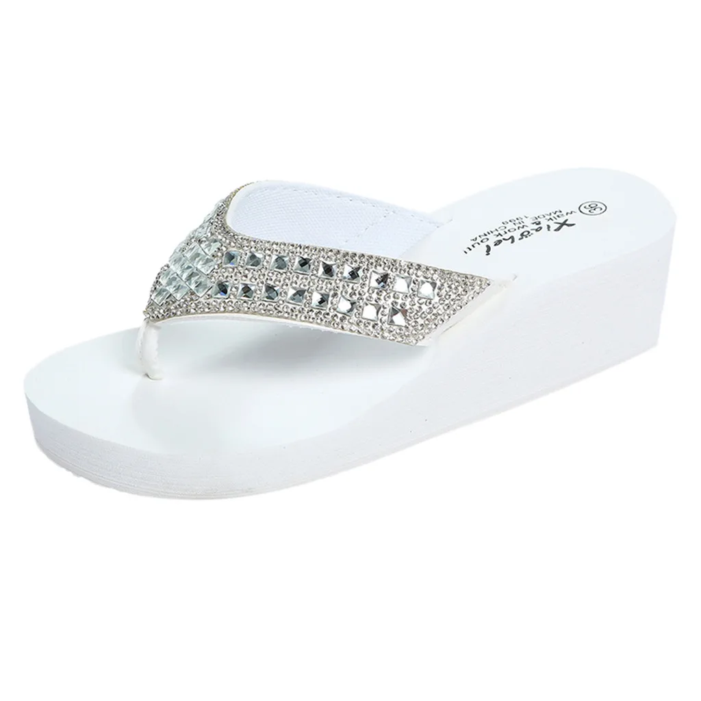 Для женщин Стразы; сандалии-шлепанцы; женские дизайнерские шлепанцы с кристаллами на платформе Для женщин Пляжная Летняя обувь Женская обувь